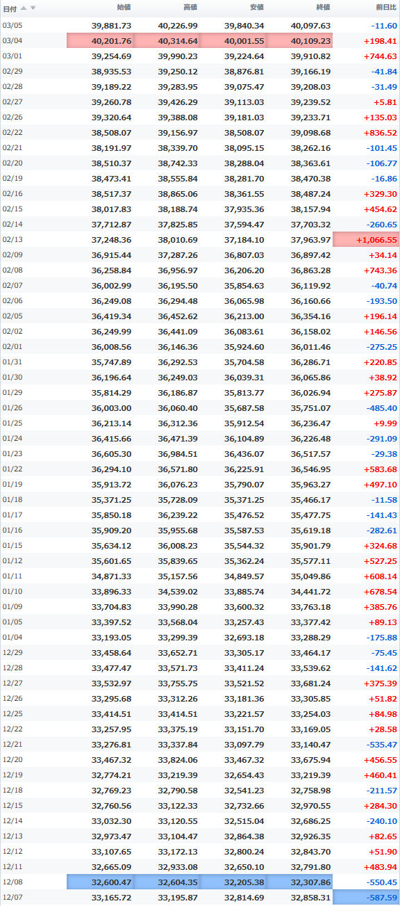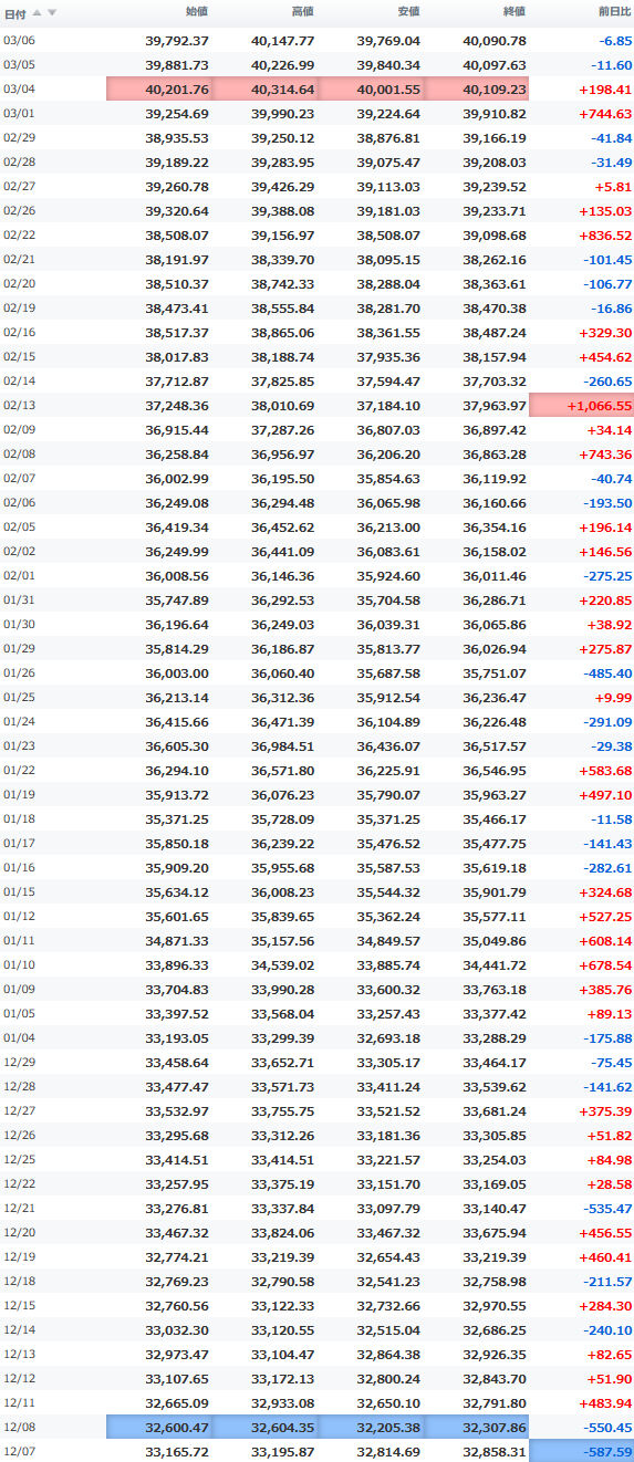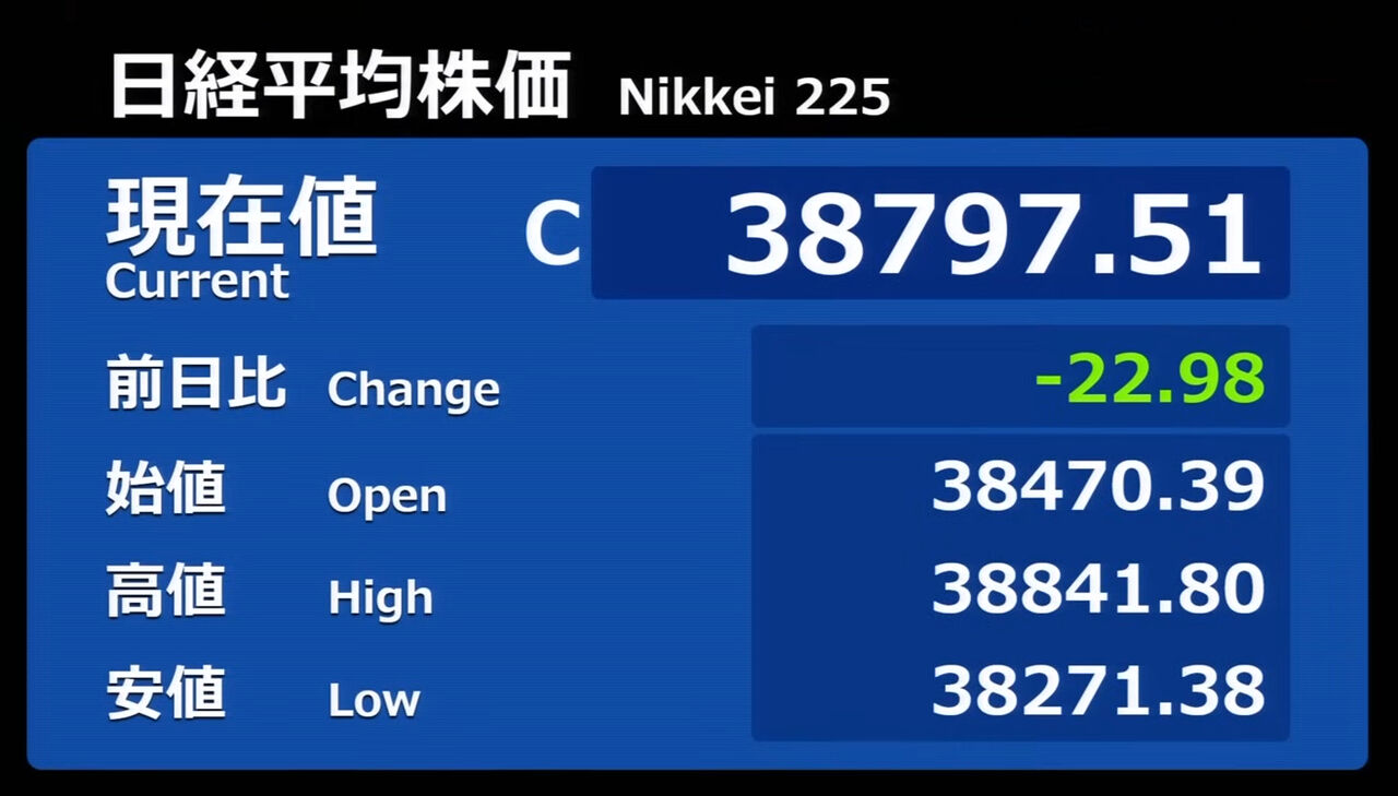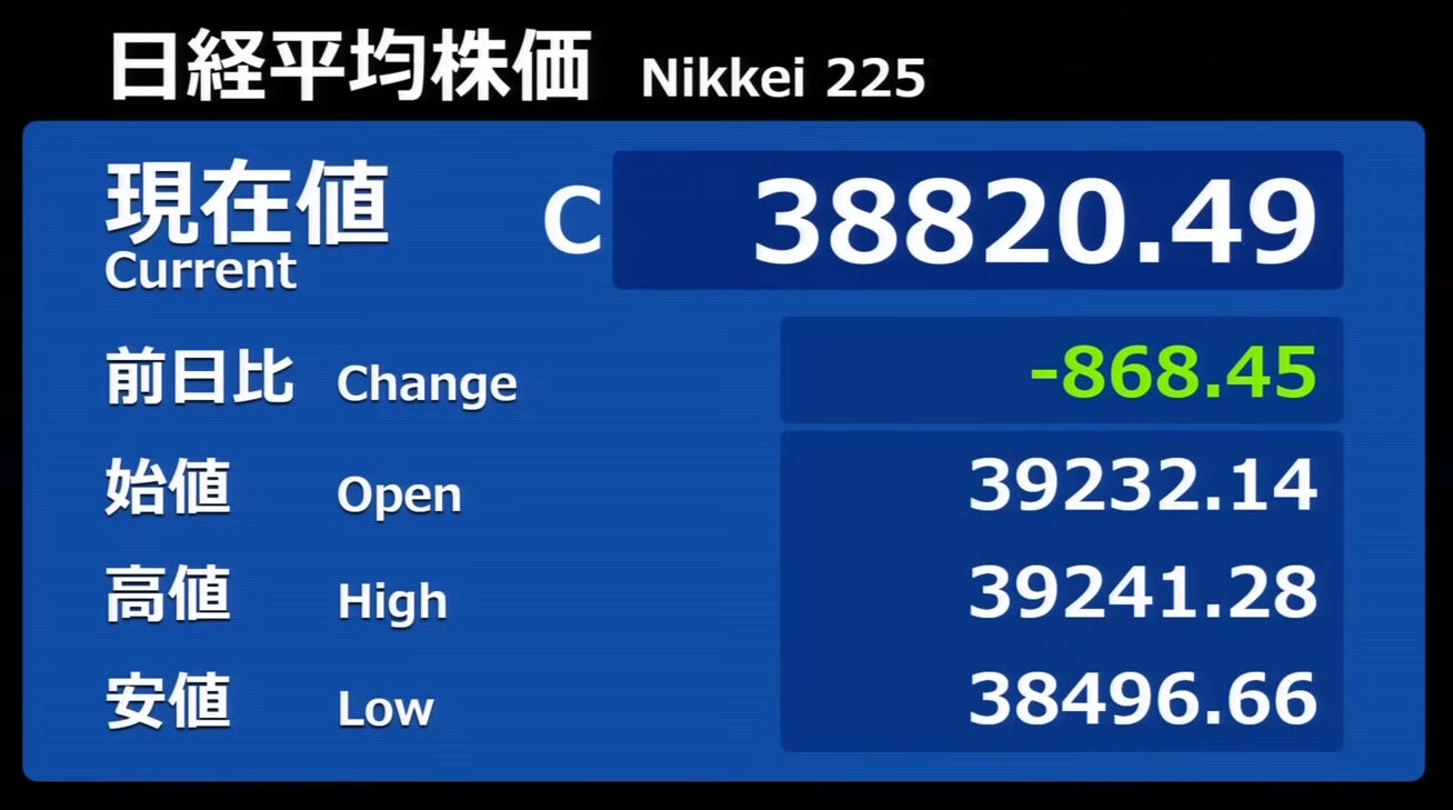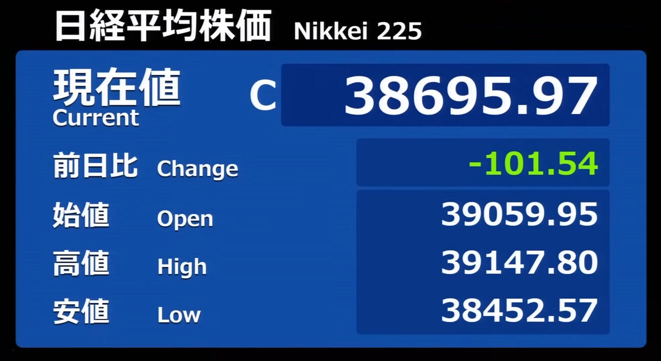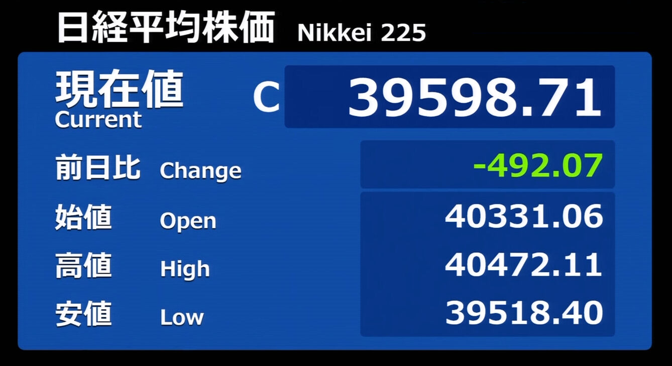 日経平均株価 終値 40,369.44(+201.37)