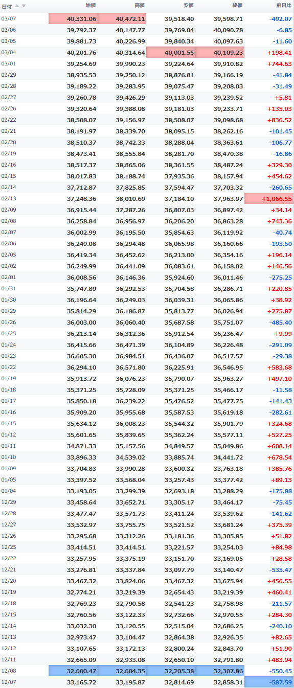 安値 40,300