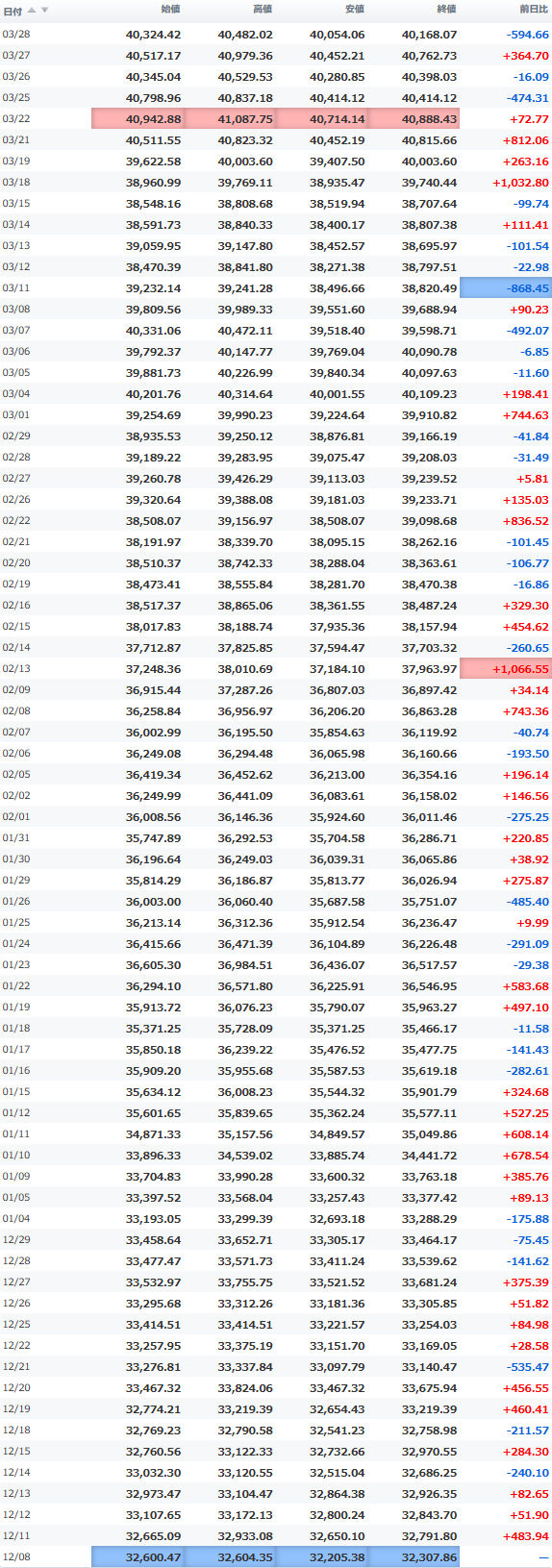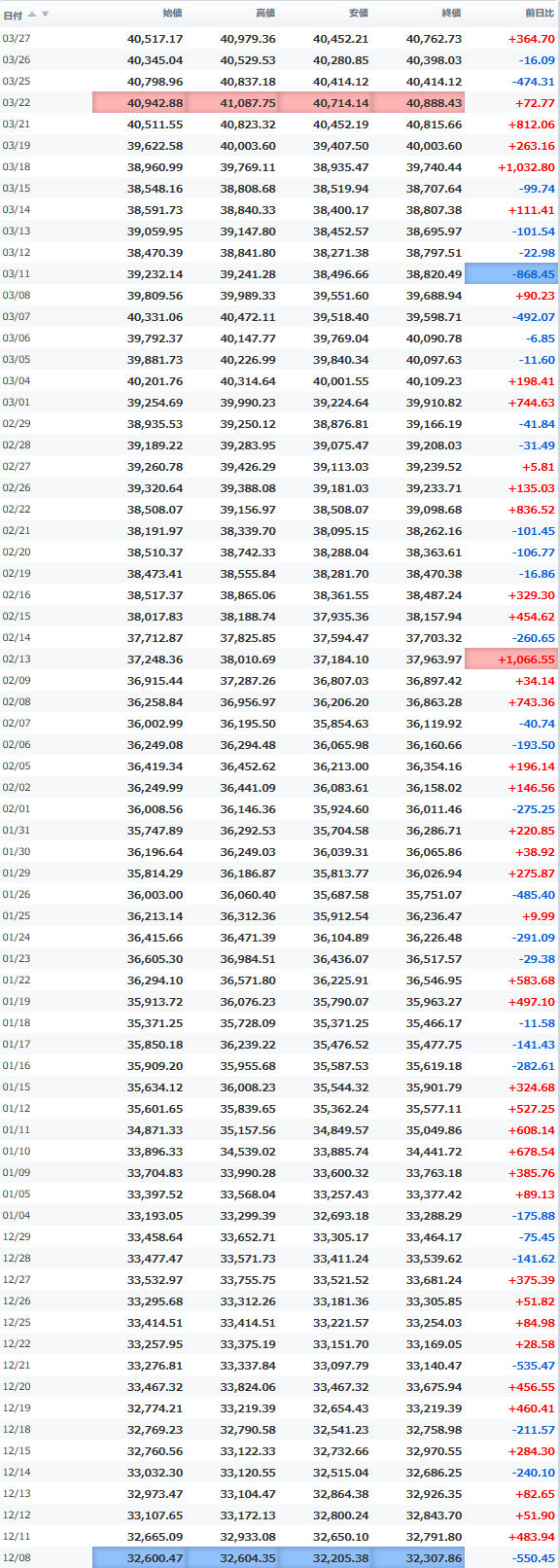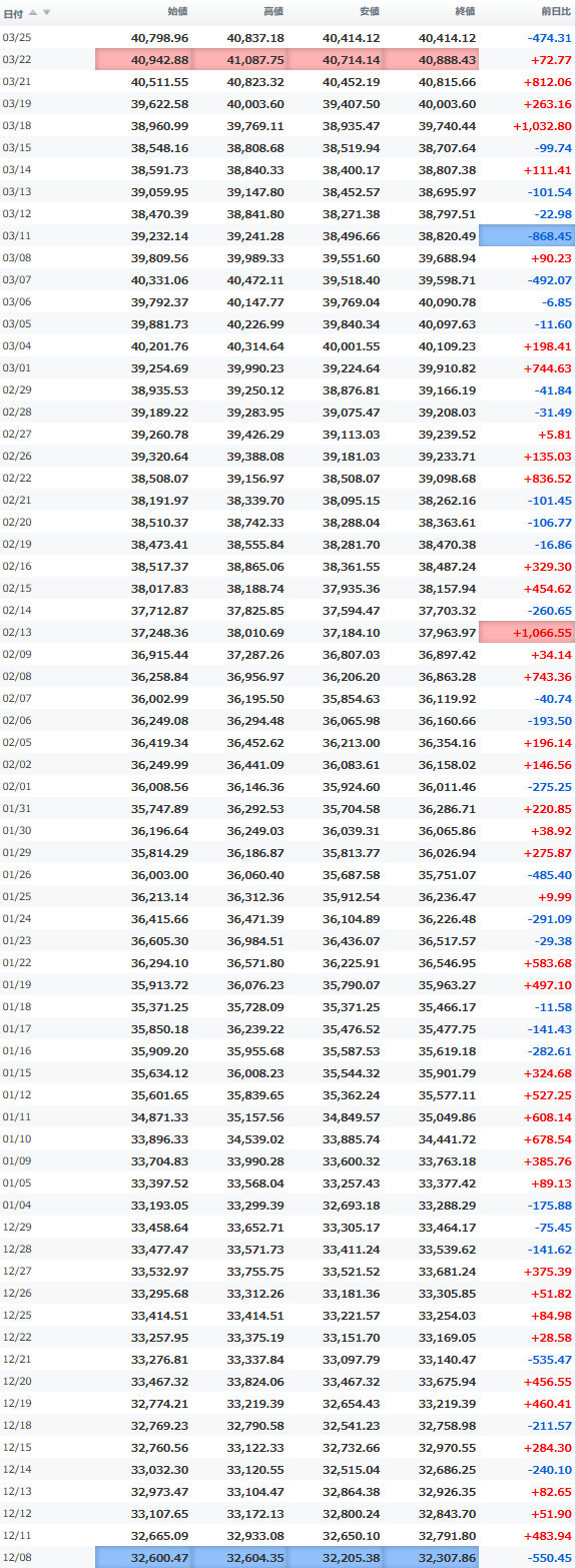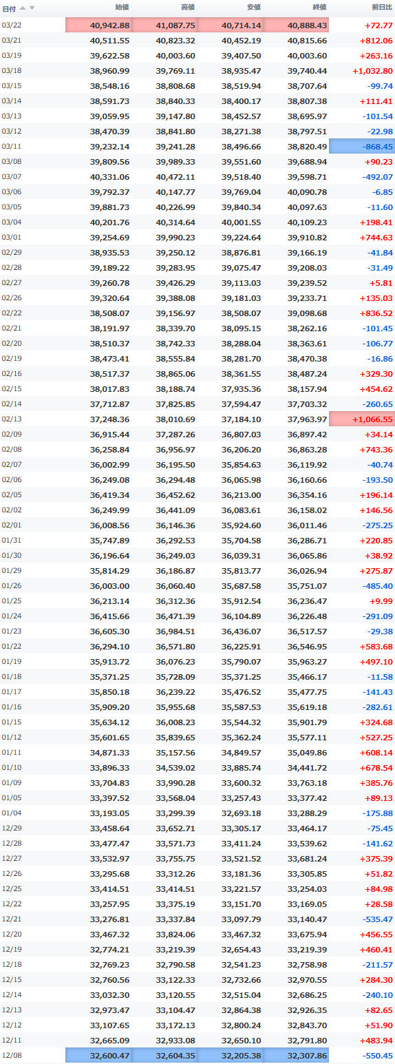 高値 40,521.71