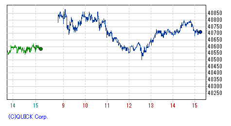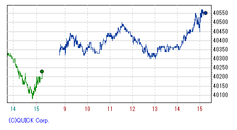 後場開場直後には一時安値40,300円まで上げ幅を縮小するが、上海後場からは再騰勢の展開に。