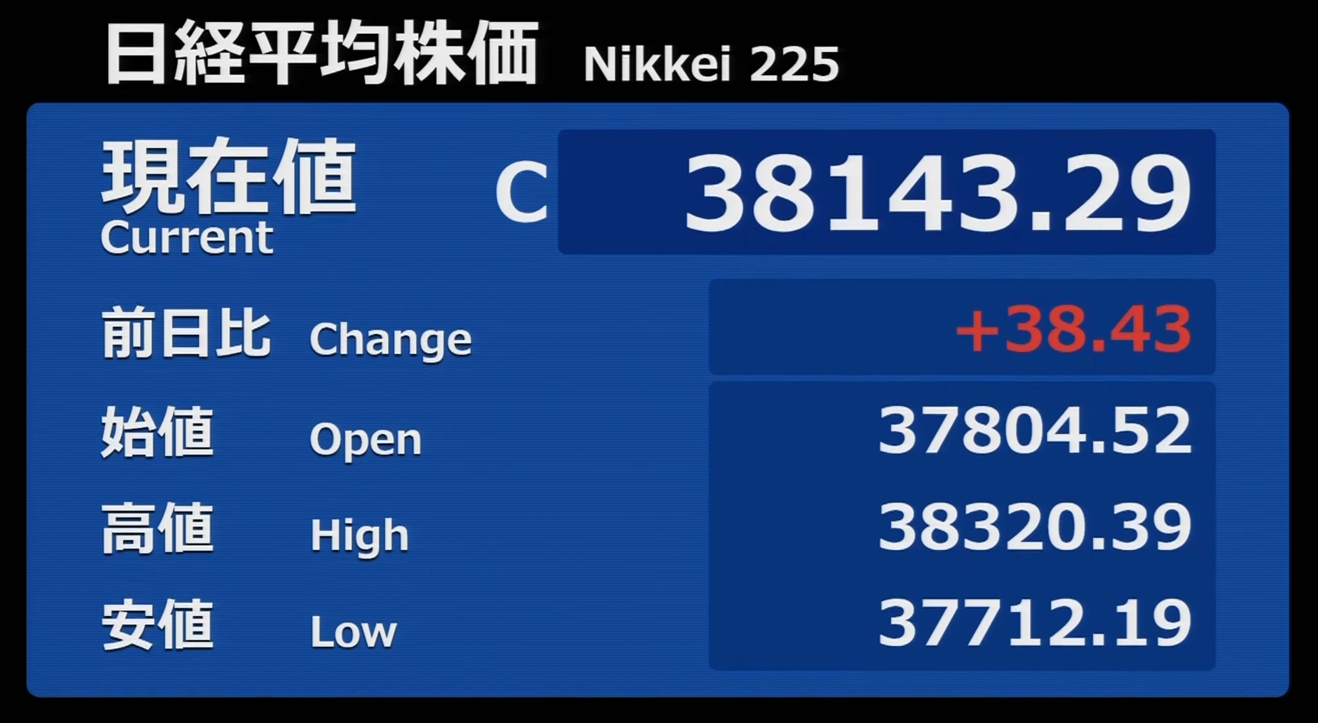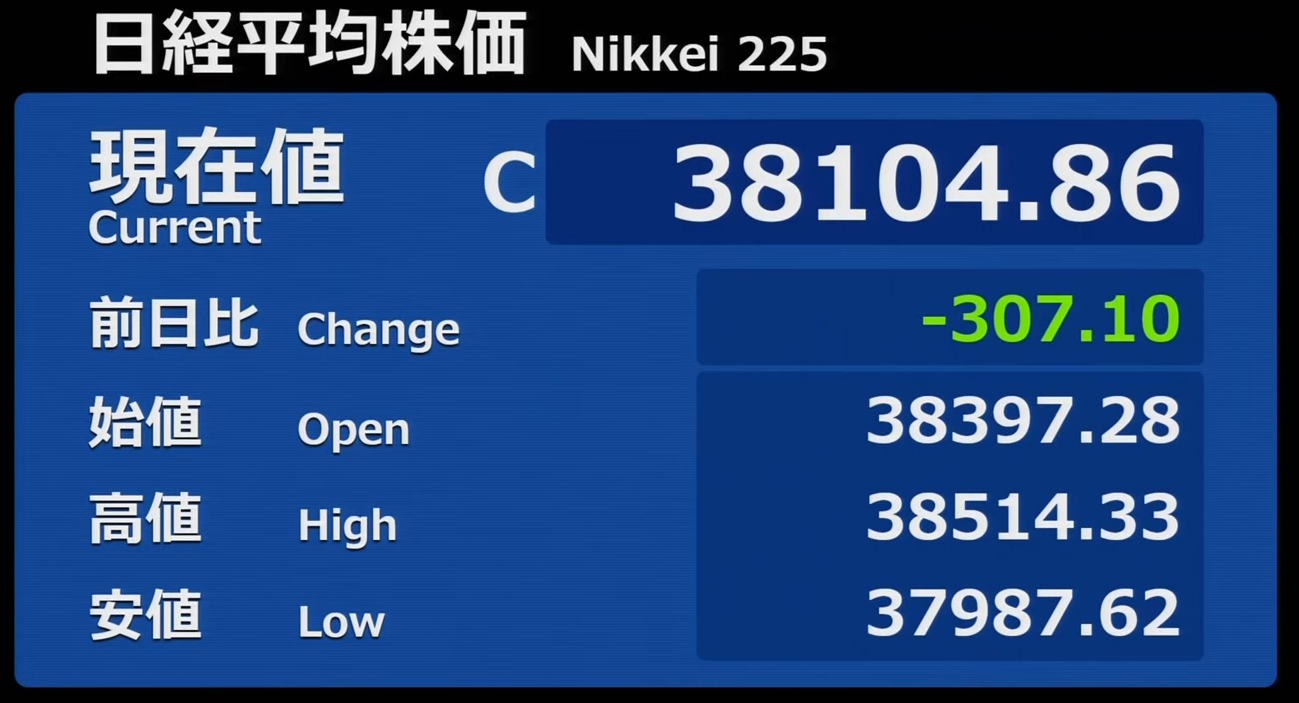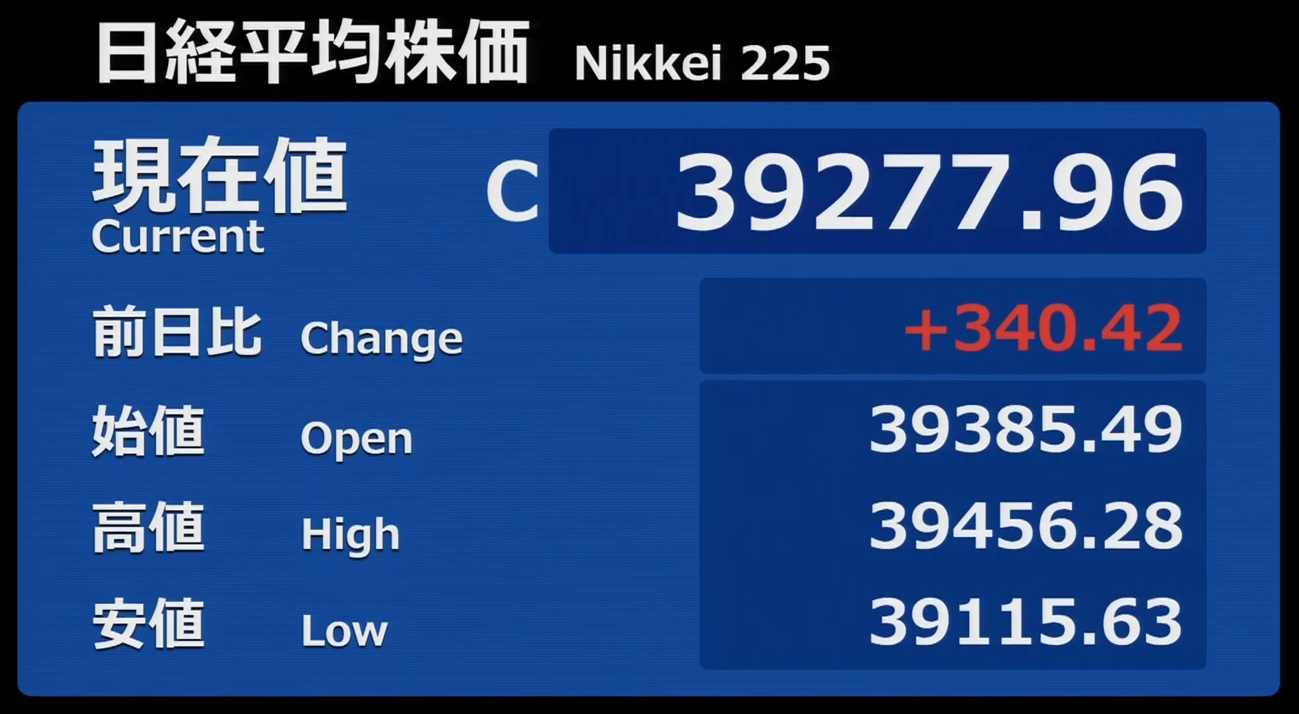 日経平均株価 終値 39,081.25(-196.14)
