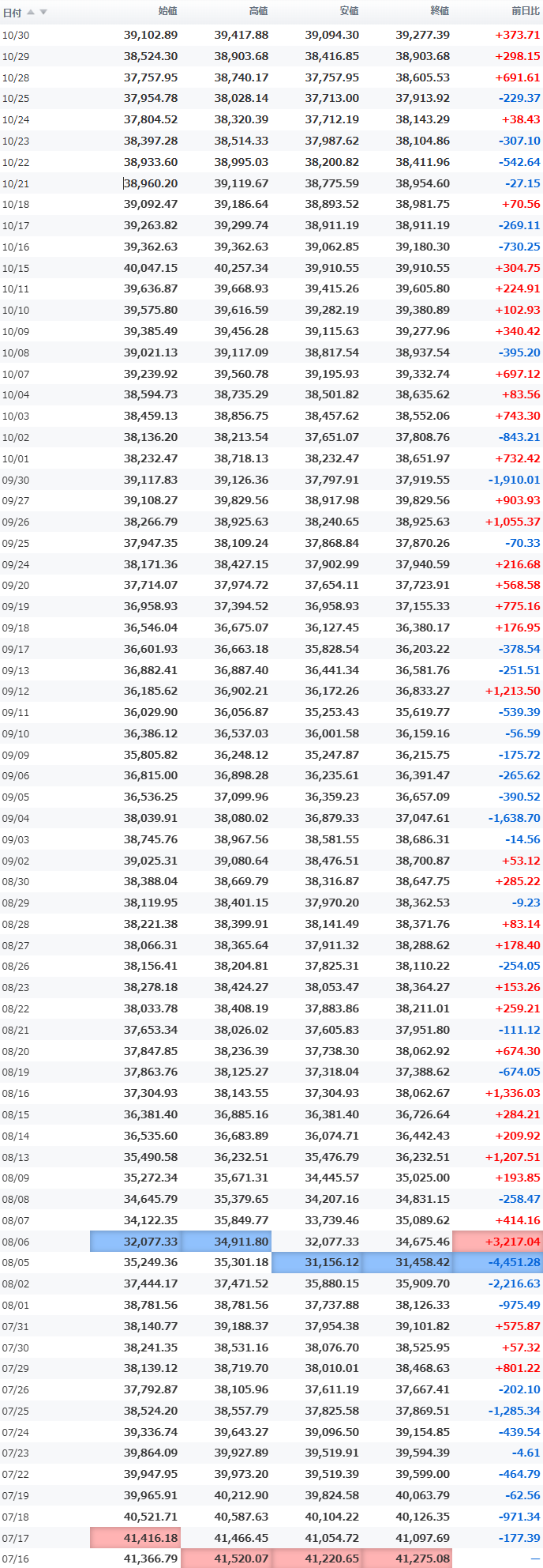 高値 39,270