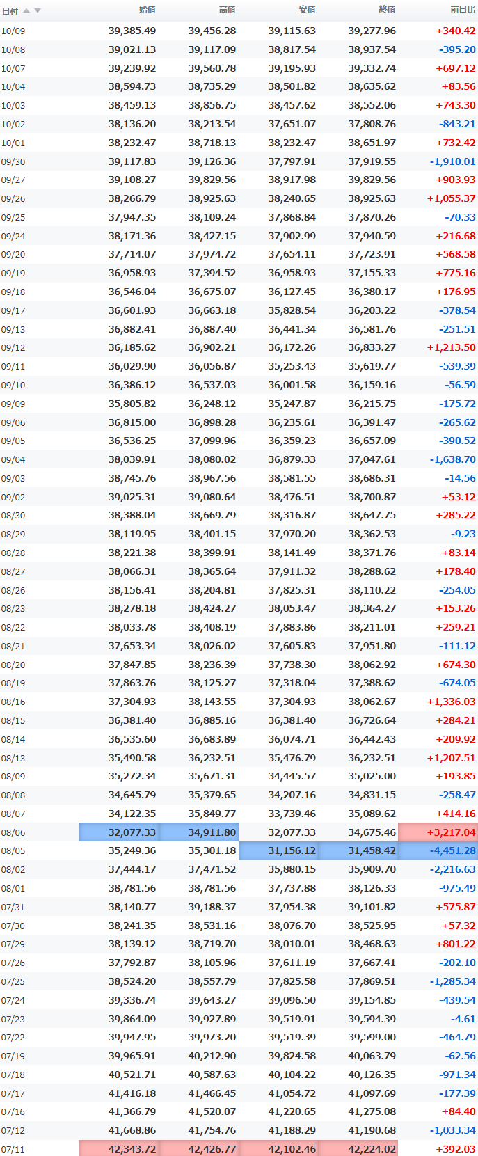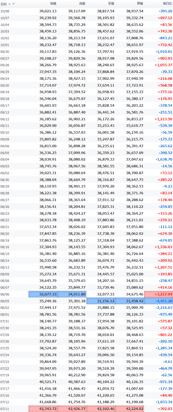 高値 39,249.21