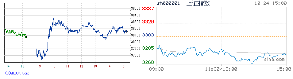 日経先物(左) /上海総合 (右)