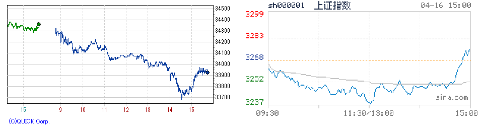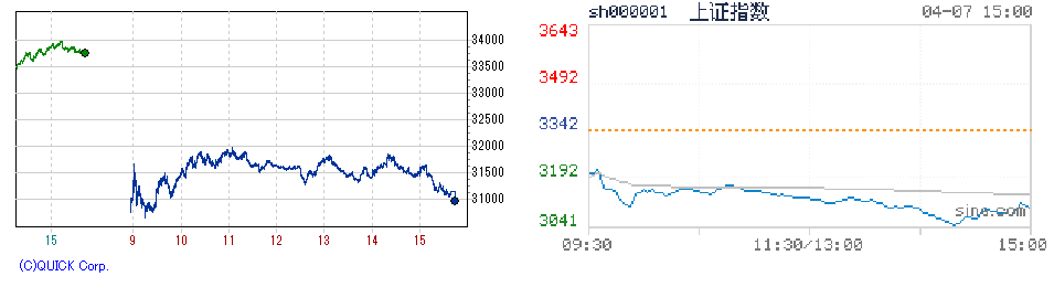 日経先物(左) /上海総合 (右)