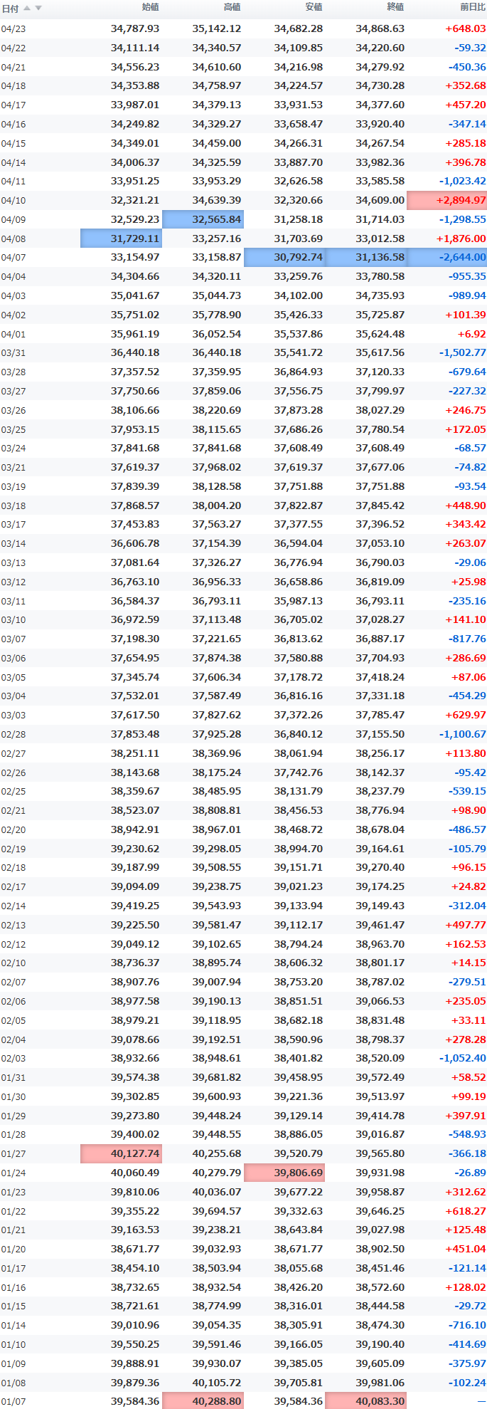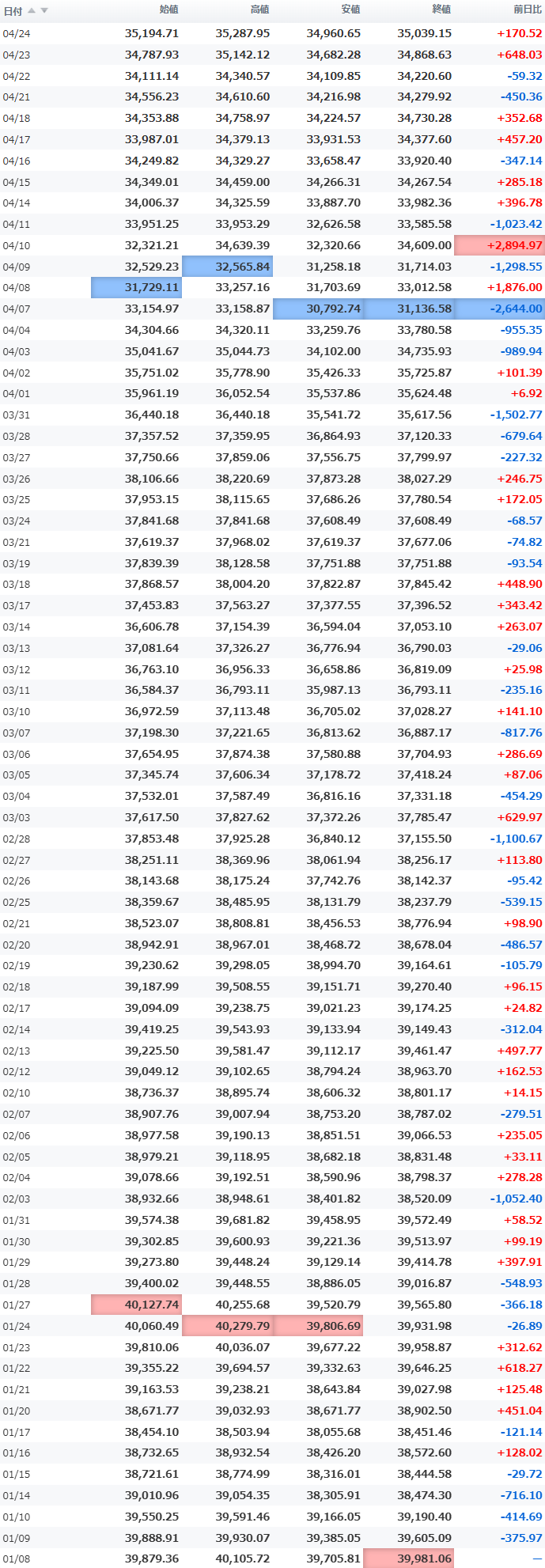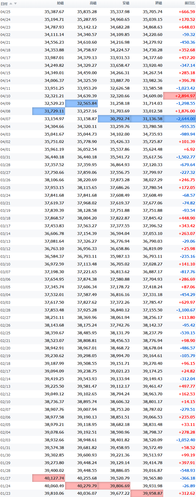 高値 35,870