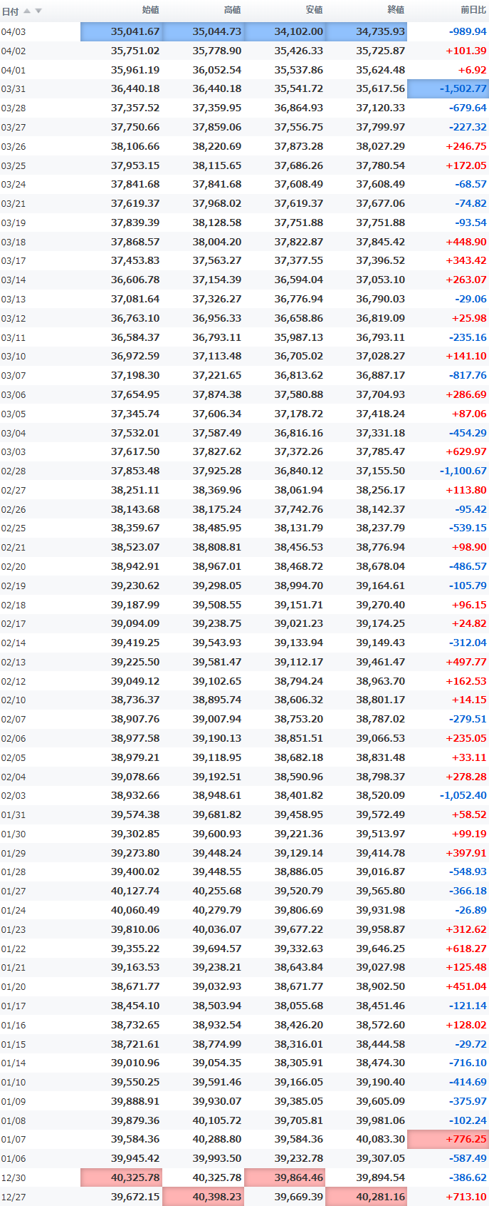 安値 35,337.98