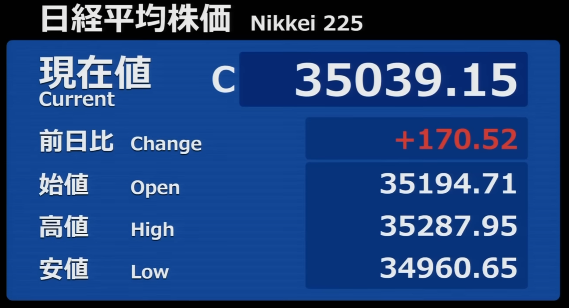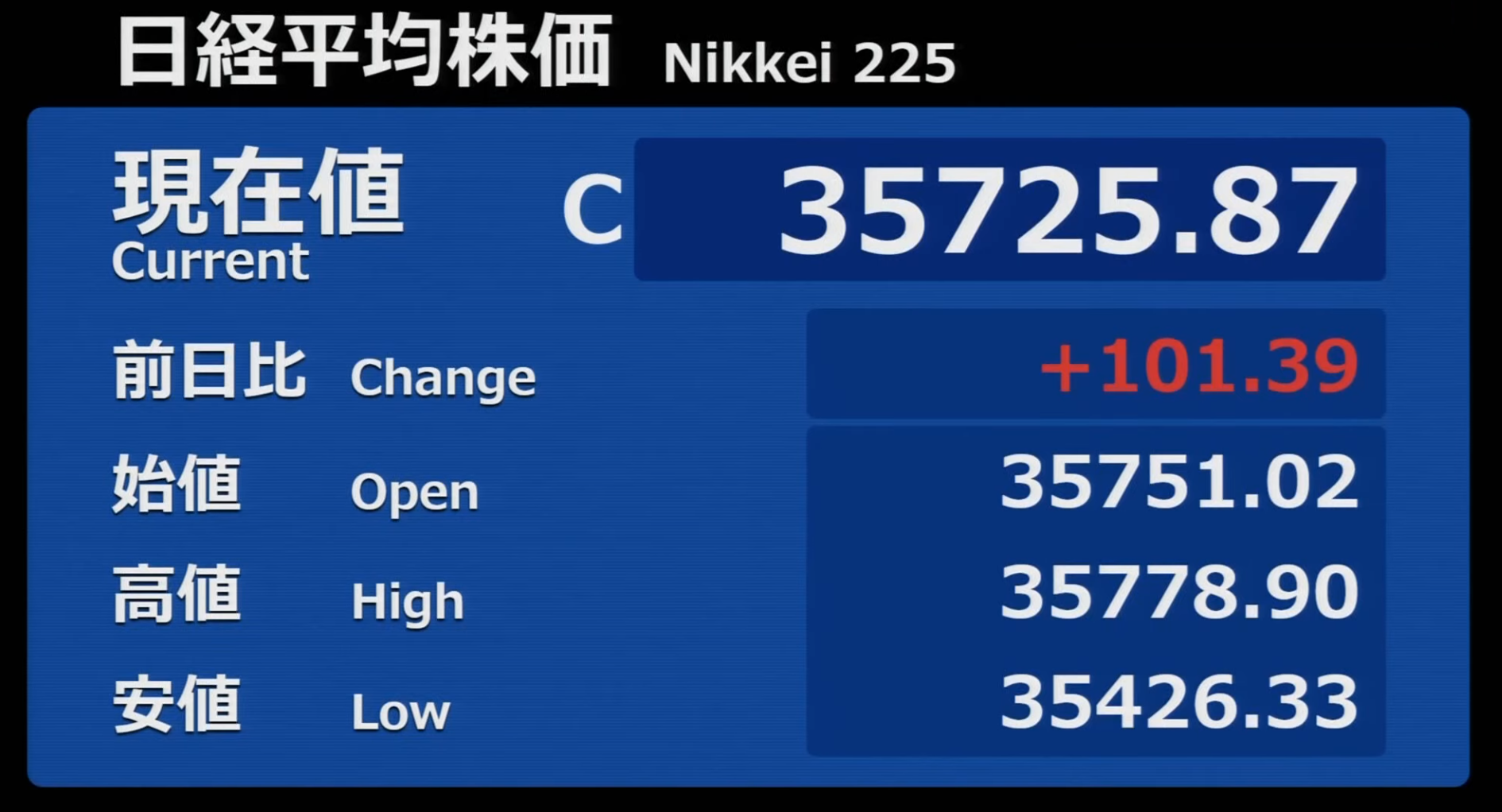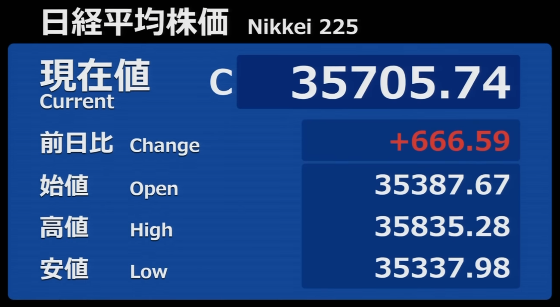 日経平均株価 終値 35,705.74(+666.59)