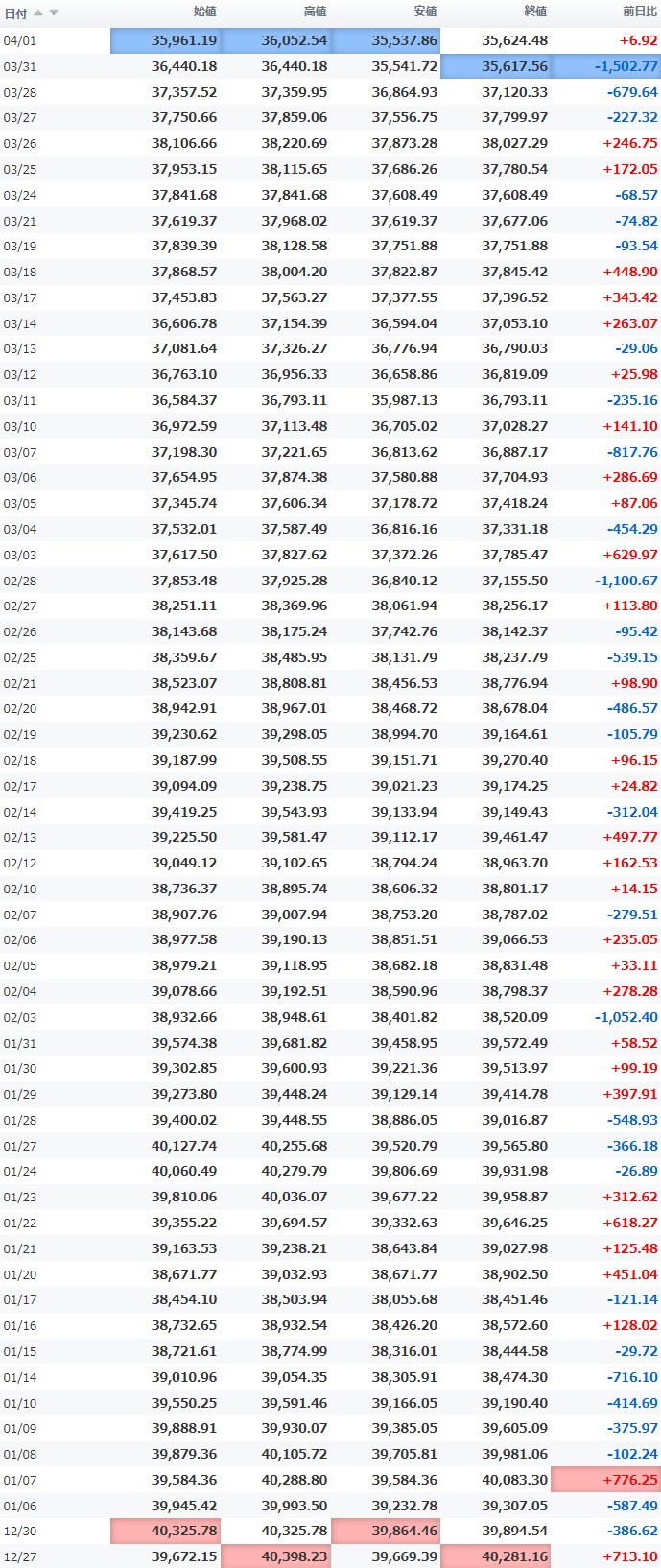 始値 35,590