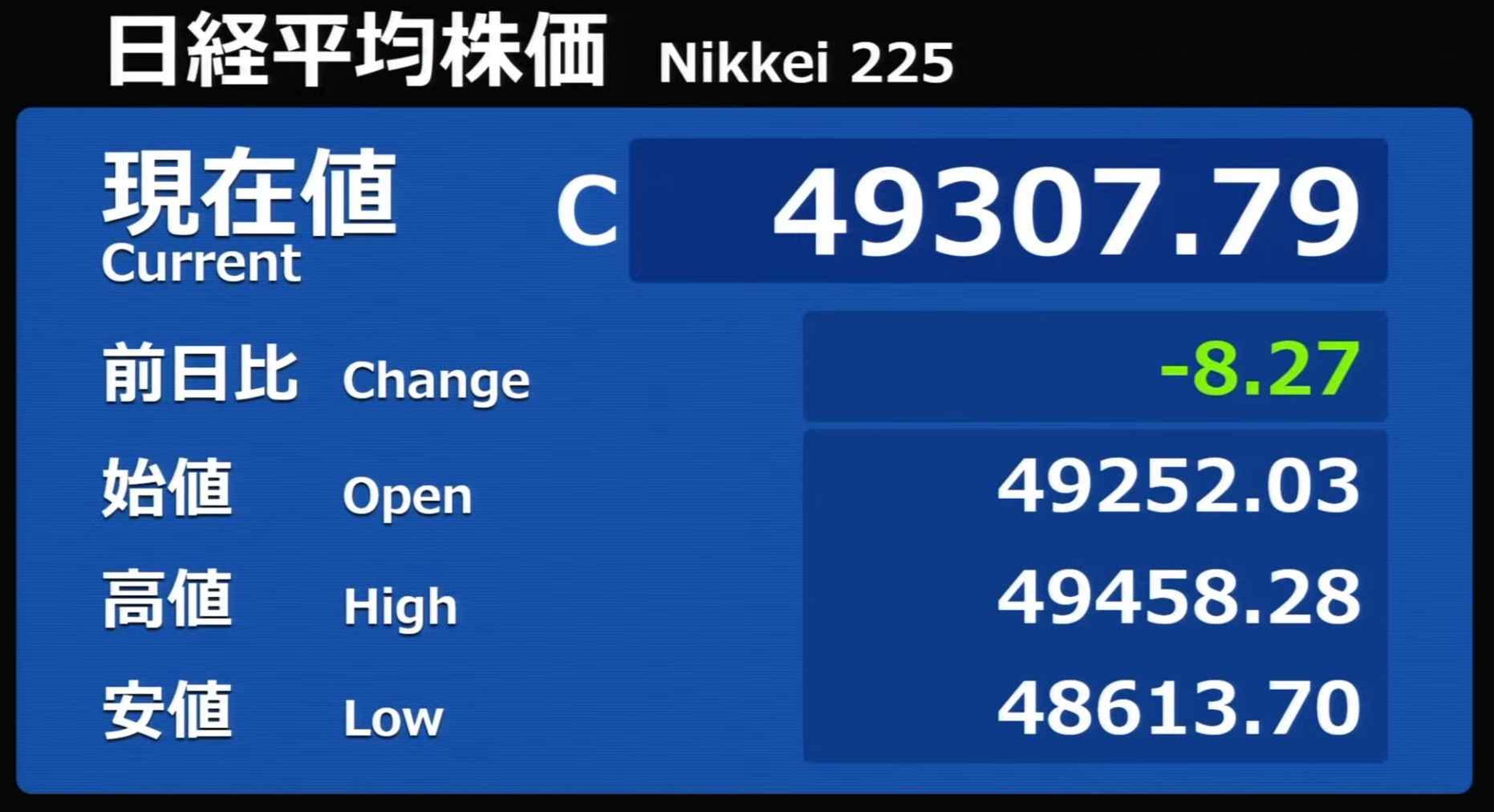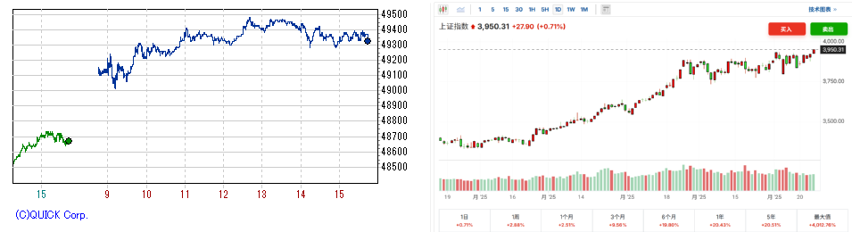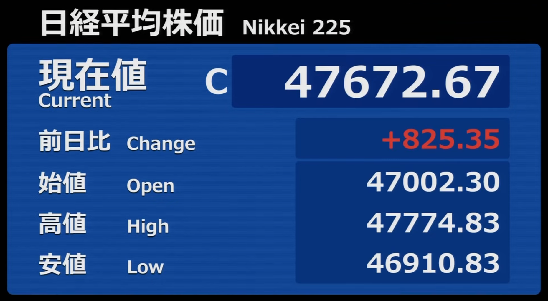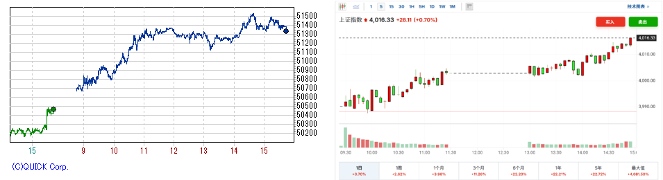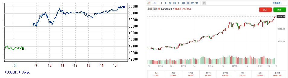 日経平均は1千円超高の3日続伸。史上初の5万2千円台乗せ。