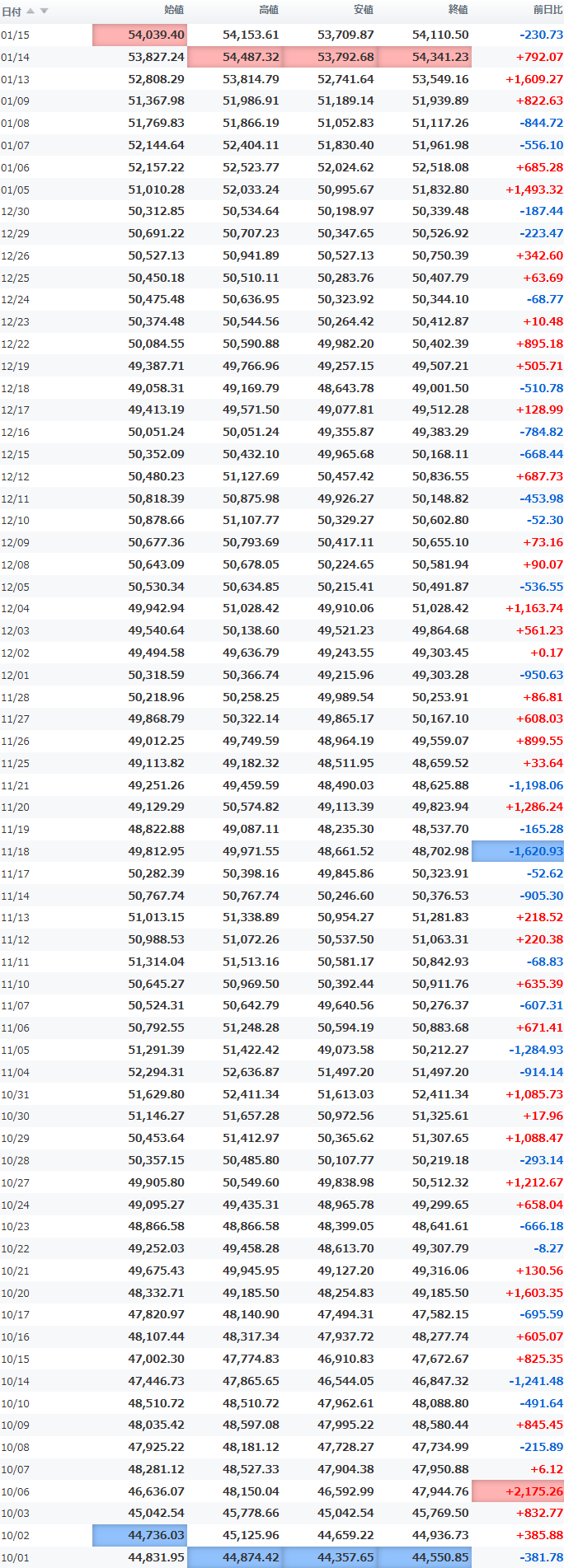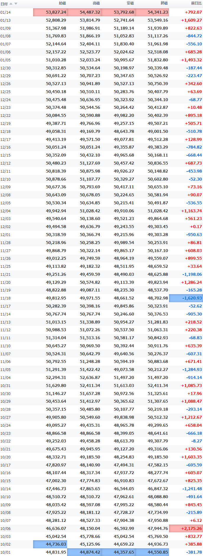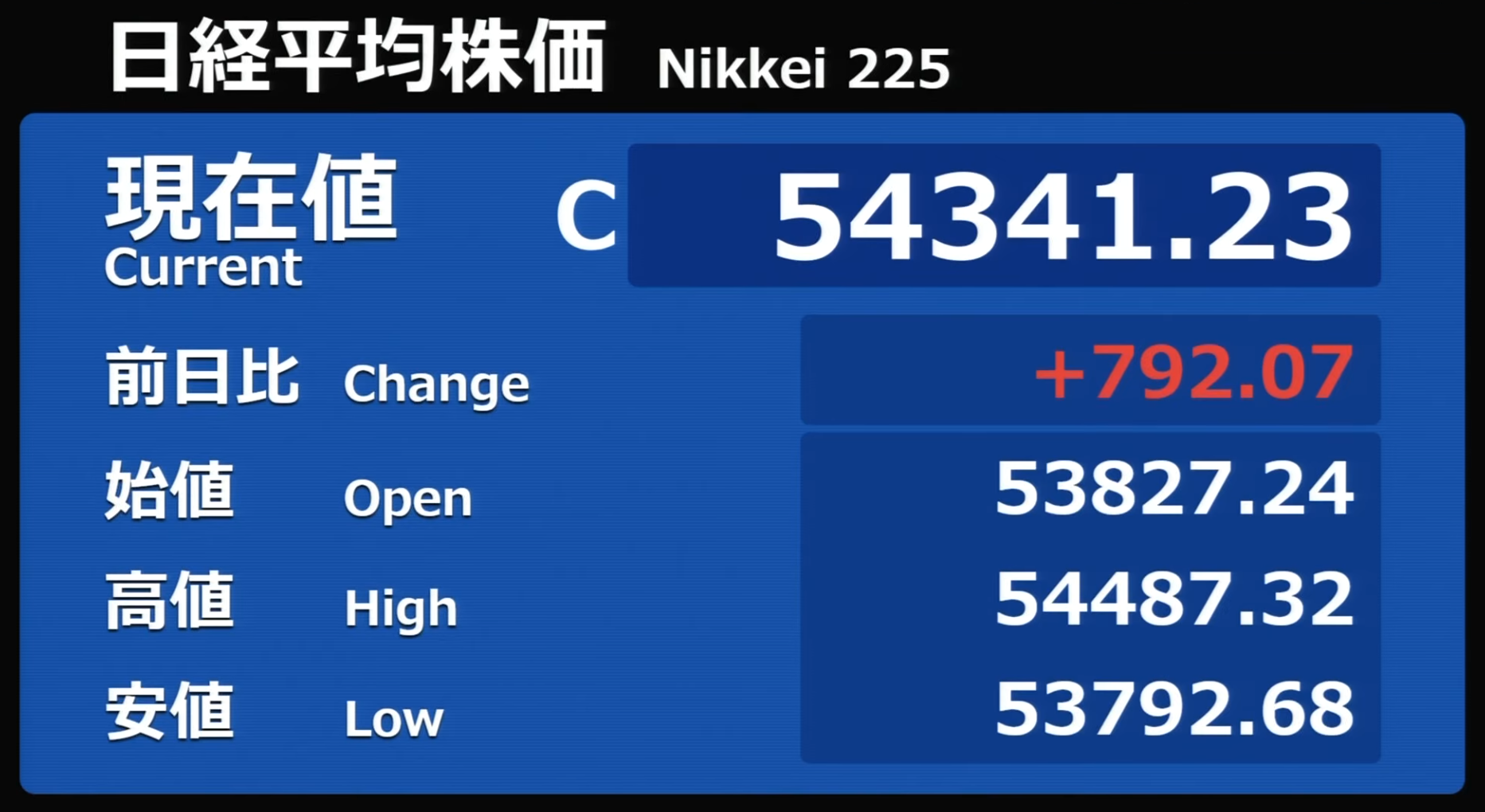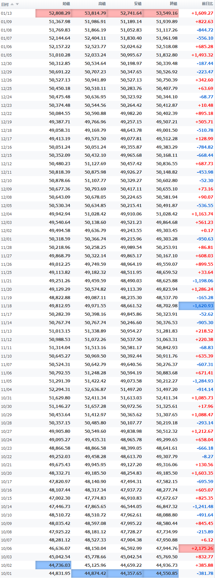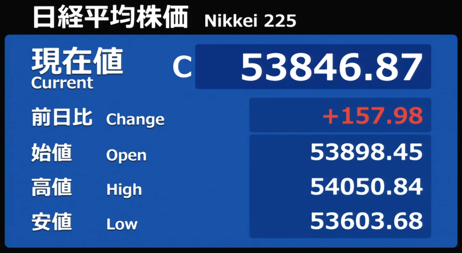 それでも朝方は5万3千円台を堅持し、上海開場を前後に再騰勢から一時高値53,610円をつける場面も。