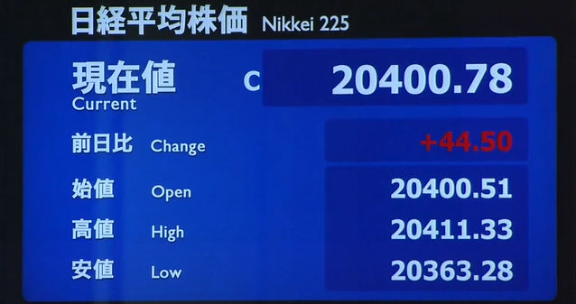 配当権利落ち前の取引時間中の高値である21日の20,481.27円には届かないものの、じり高が続いている。