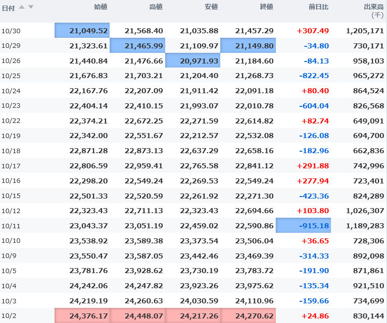 始値 21,049.52