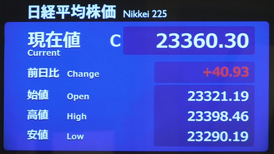 日経平均は指数が小反発。先物は急反発。120円GUで始まり、序盤こそ棒上げ商状から上値を試す場面もあったが、一時高値23,240円で頭打ち失速。