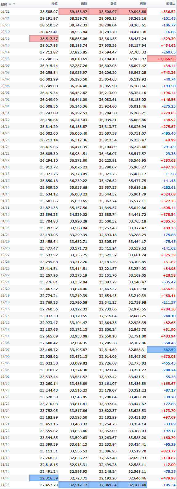 高値 39,156.97