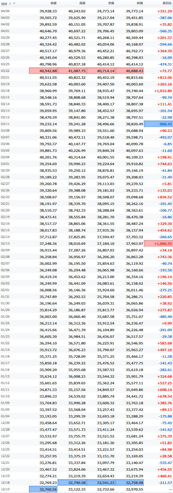 高値 40,243.02
