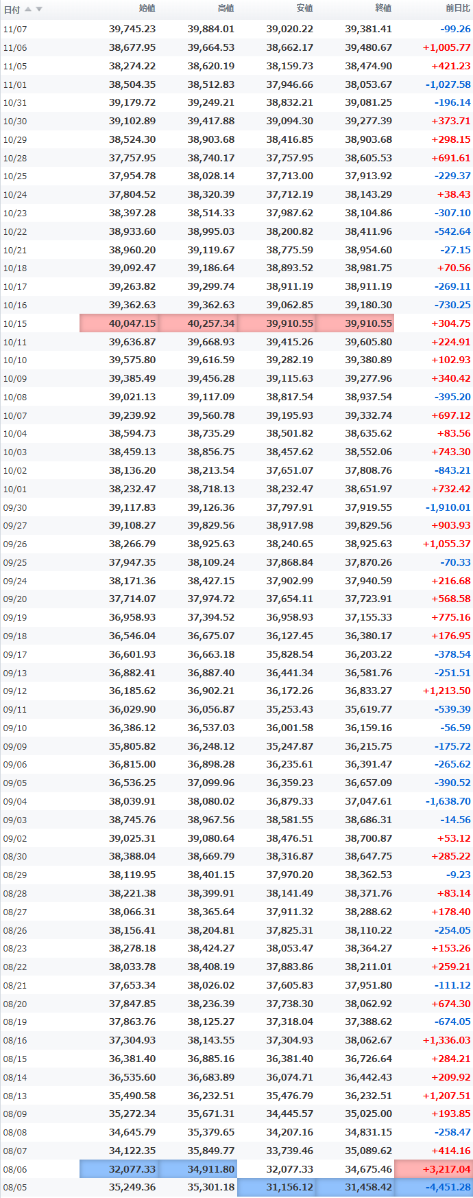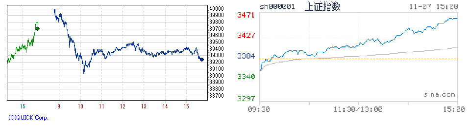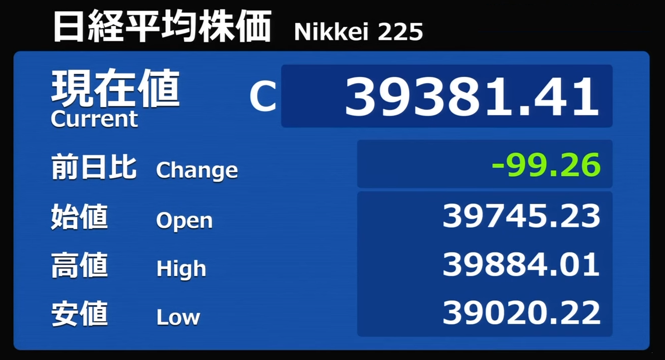 寄り付きから1時間半ほどで千円近くも急落し、一時安値39,030円まで突っ込む場面もあったが、3万9千円台は何とか堅持し踏みとどまると、上海開場前後には下げ渋って推移。
