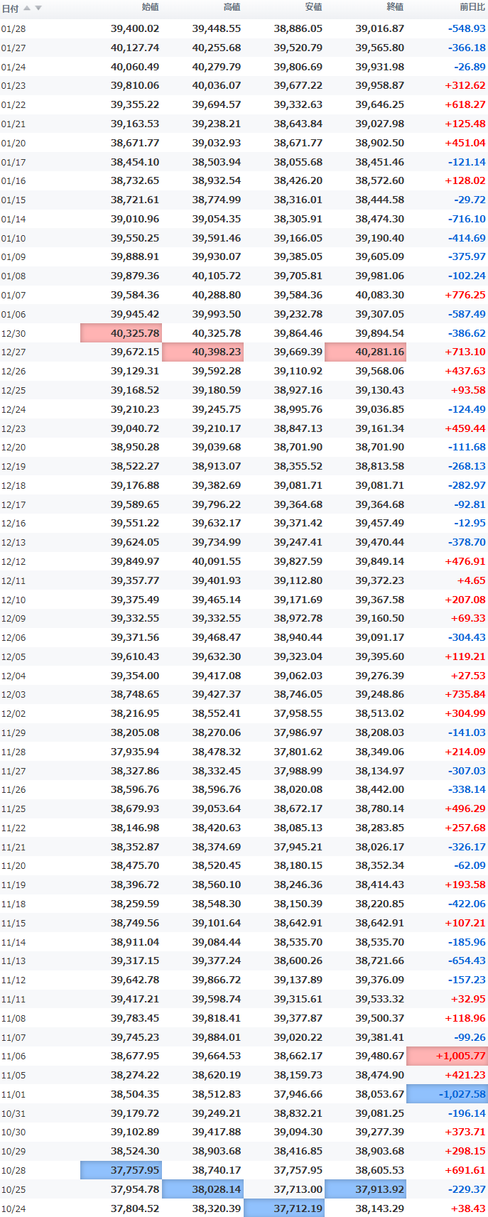 先物は380円GDで始まり、序盤こそ3万9千円を割り込み、一時安値38,890円まで突っ込む場面もあったが、すぐさま切り返し、一時高値39,380円まで持ち直す場面も。