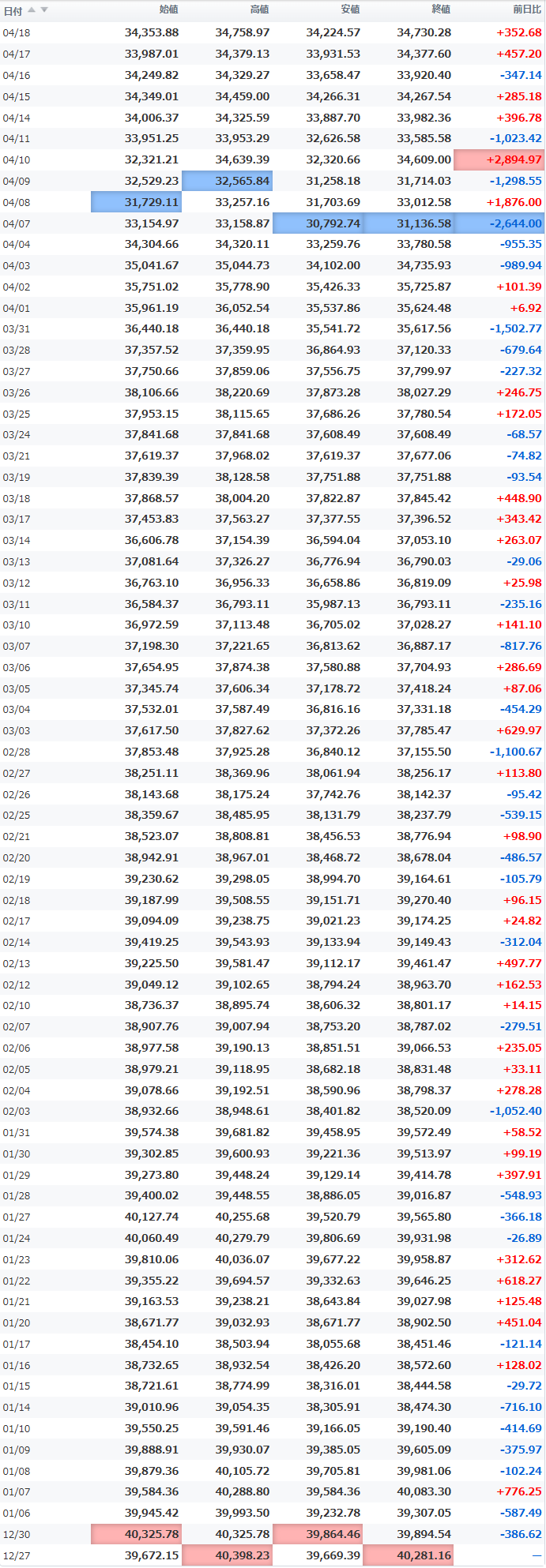 高値 34,758.97
