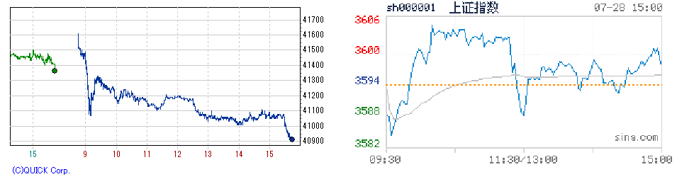 先物は240円GUで始まり、一時高値41,610円の寄り天から急落。