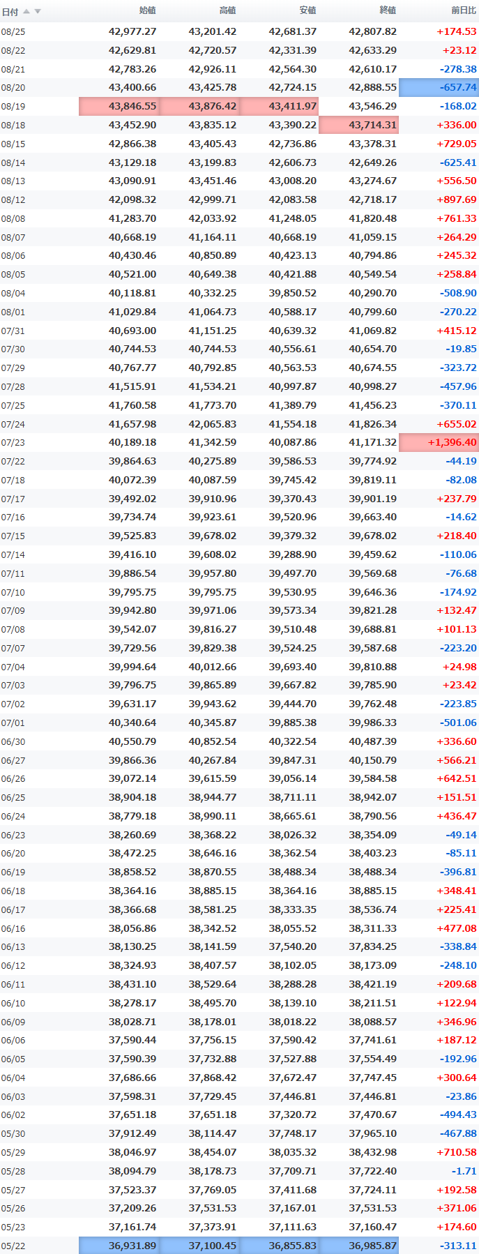 高値 43,201.42