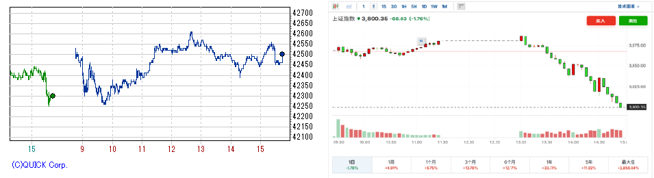 日経先物(左) /上海総合 (右)