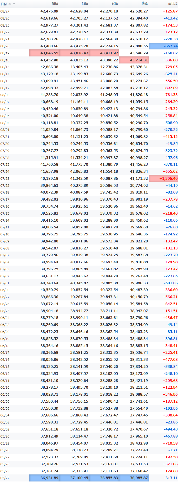 高値 42,628.04