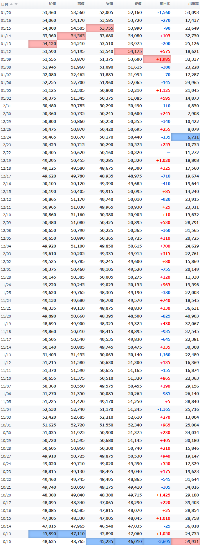 高値 53,550