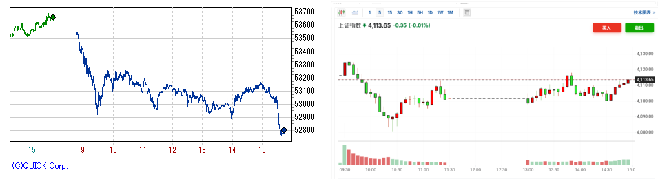 日経先物(左) /上海総合 (右)