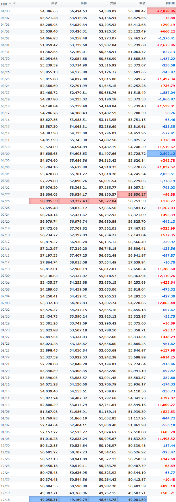 令和のブラックマンデーの翌日に過去最大の上げ幅を記録した2024年8月6日の3,217.04円、トランプ関税ショックの後に関税が90日停止されたことを受けて巻き戻された2025年4月10日の2,894.97円に次ぐ歴代3位の上げ幅を記録。