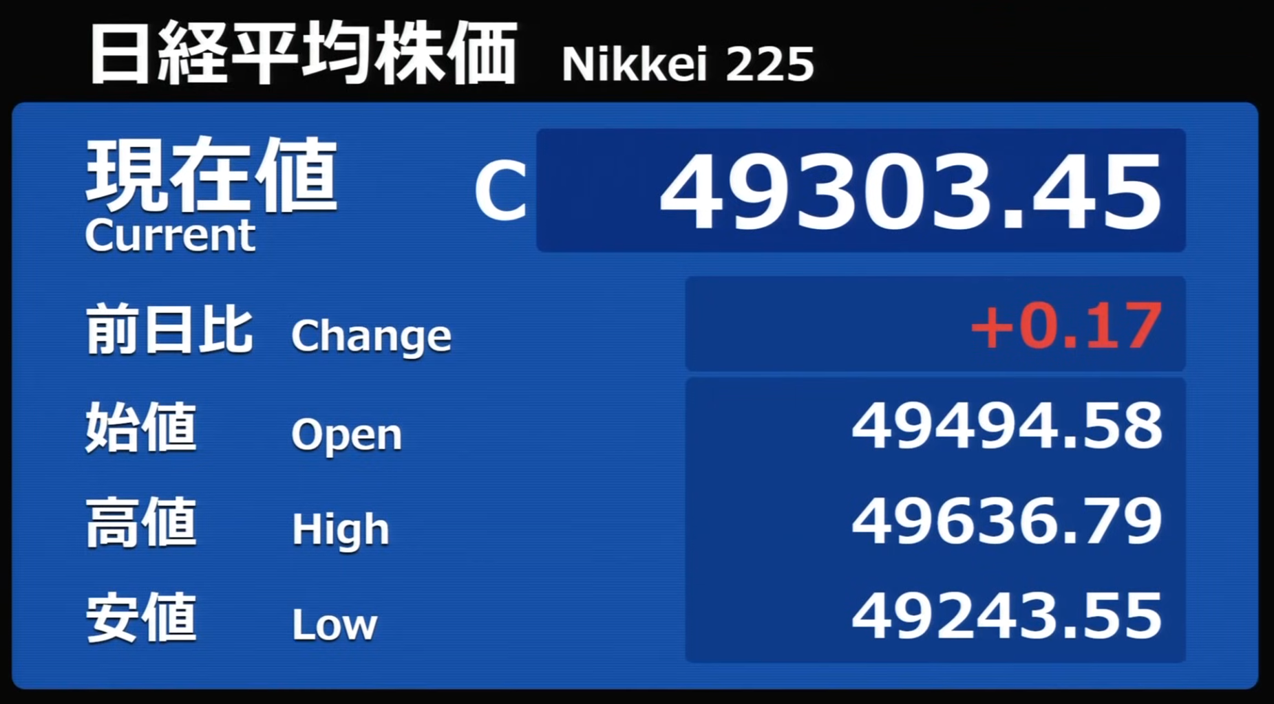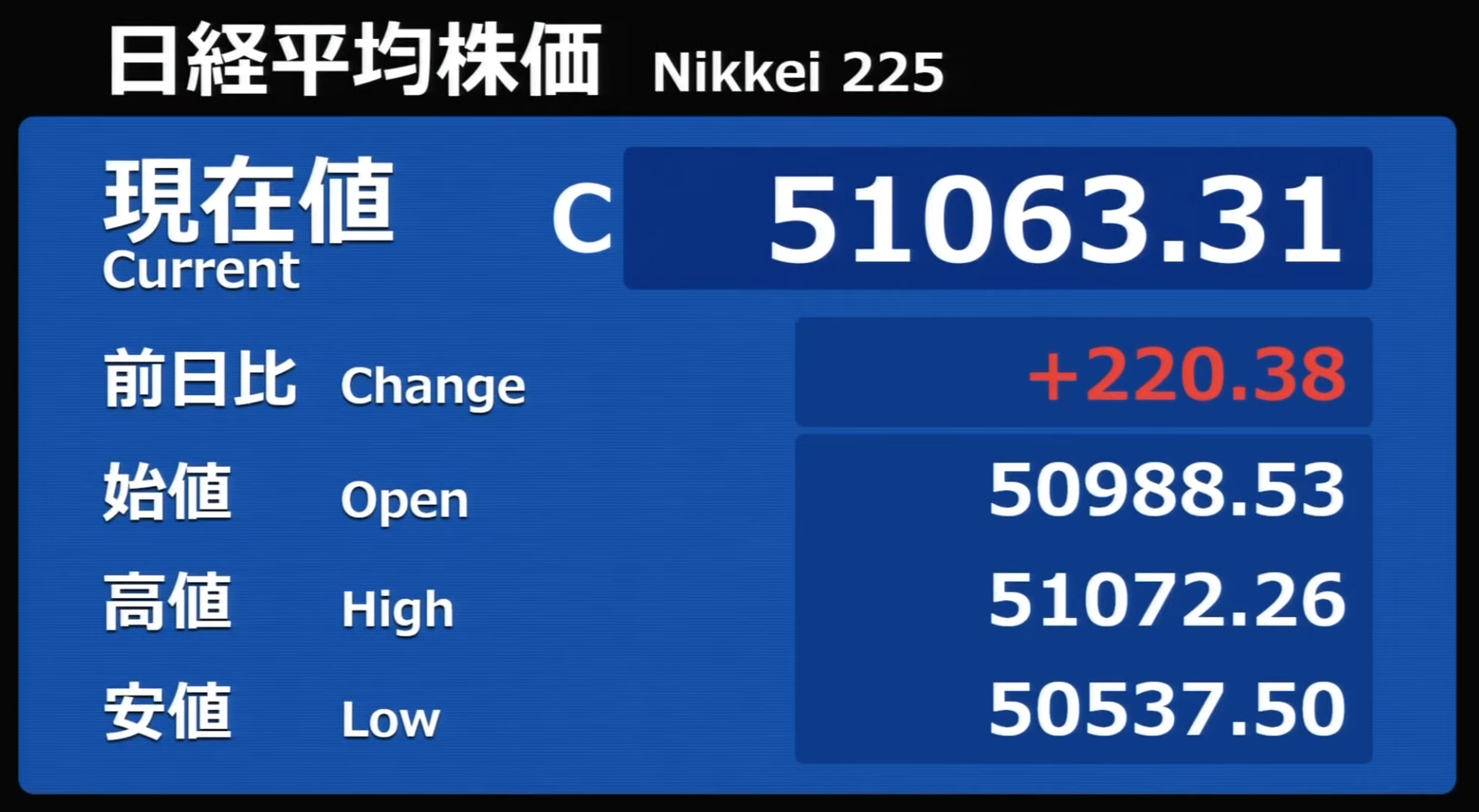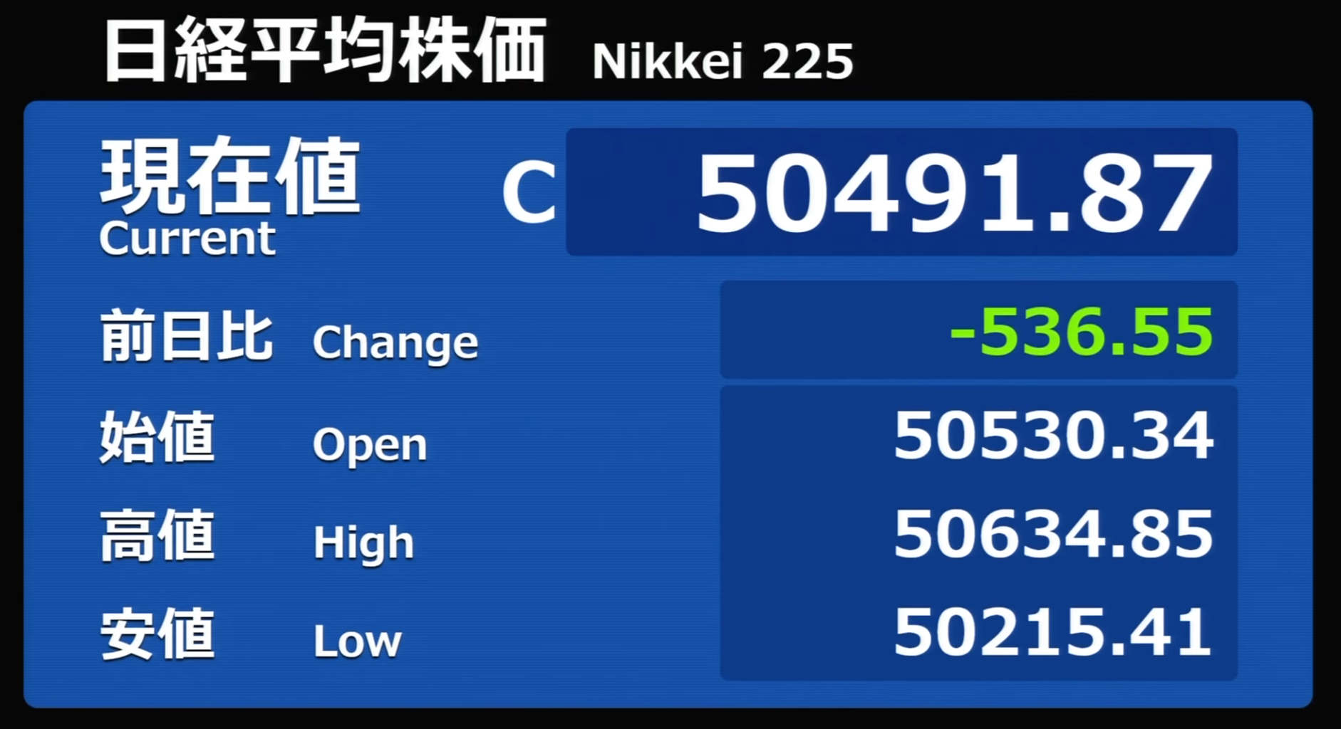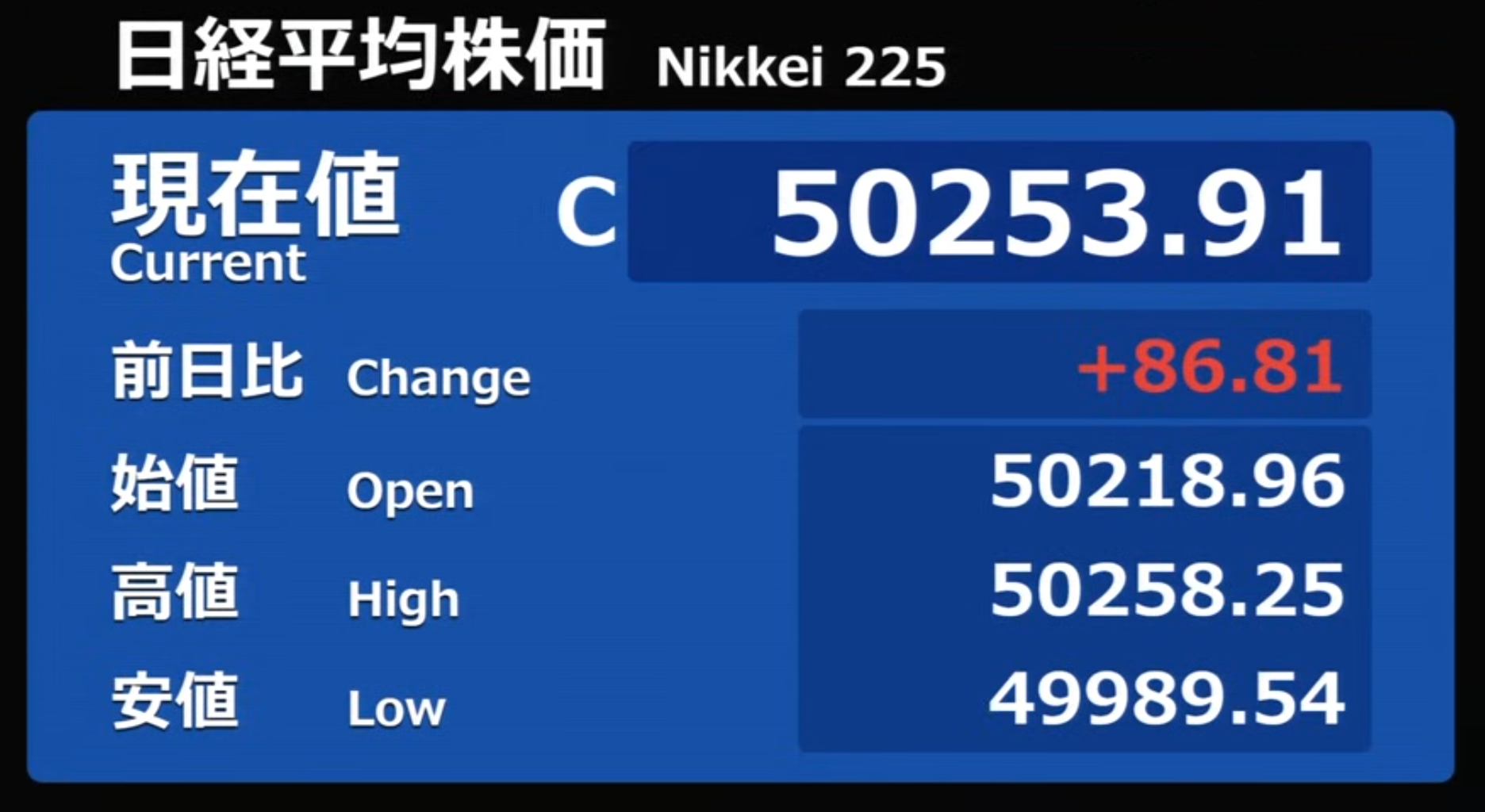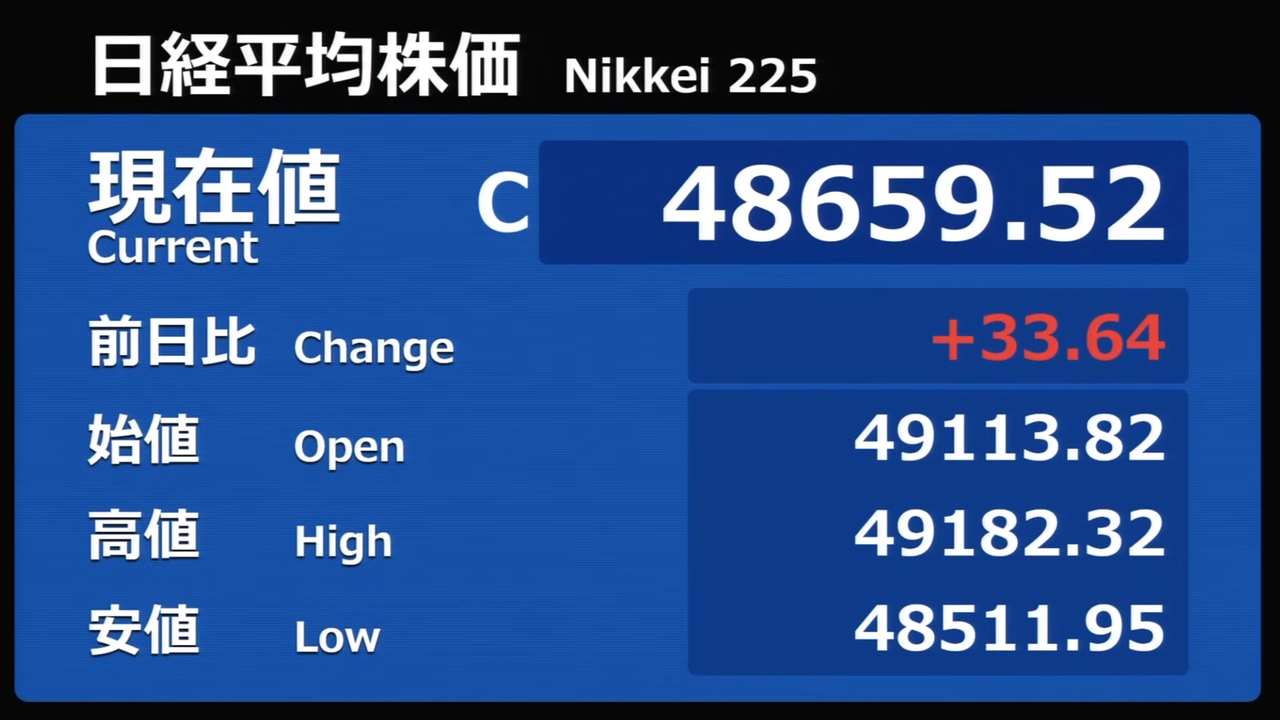 日経平均株価 終値 50,581.94(+90.07)