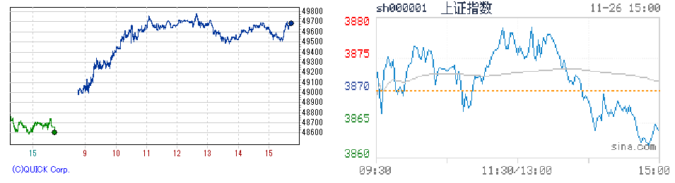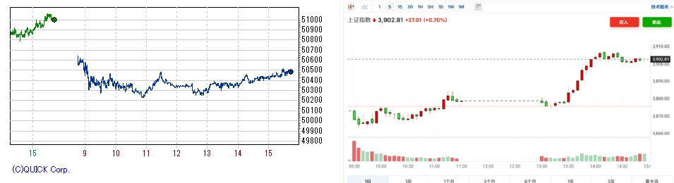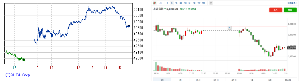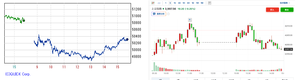 日経先物(左) /上海総合 (右)