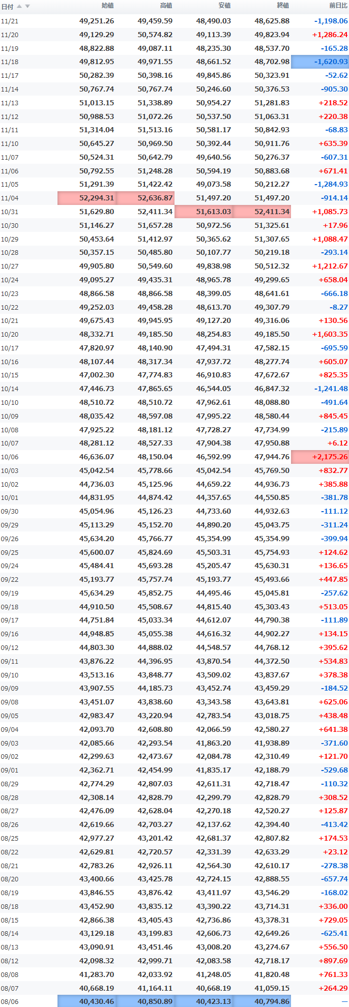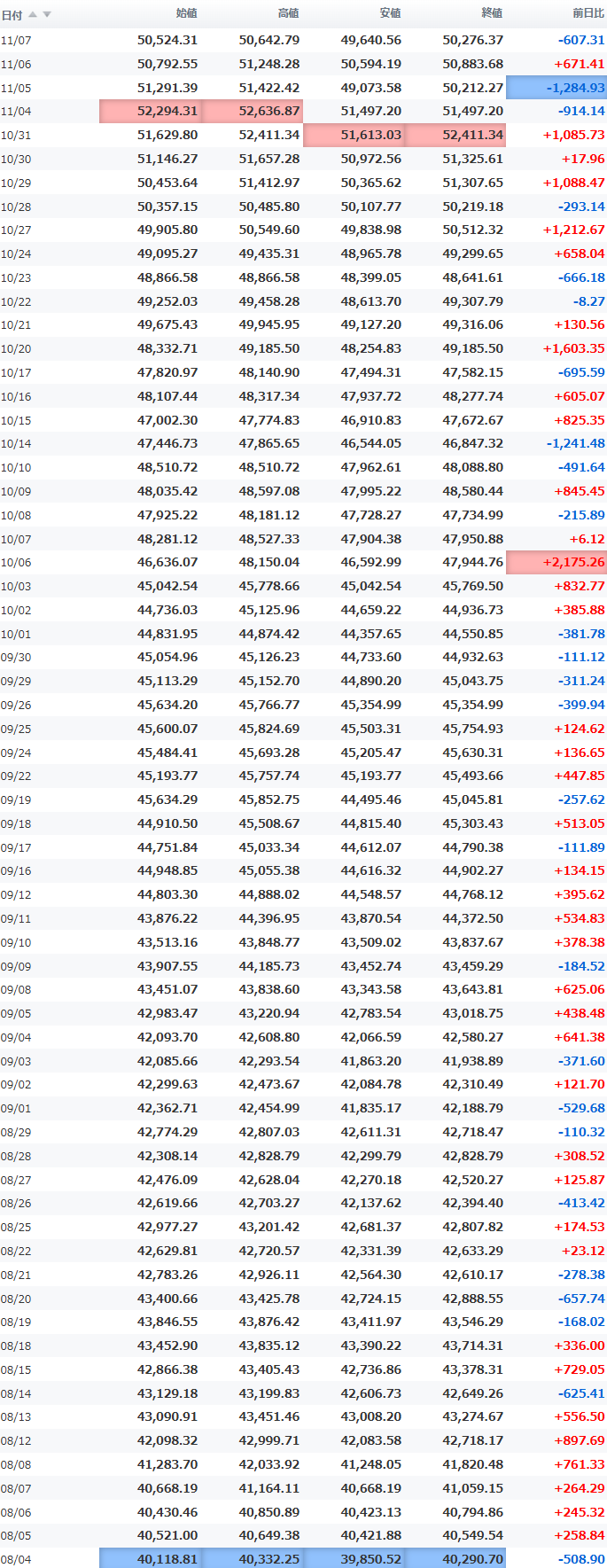 高値 50,678.05
