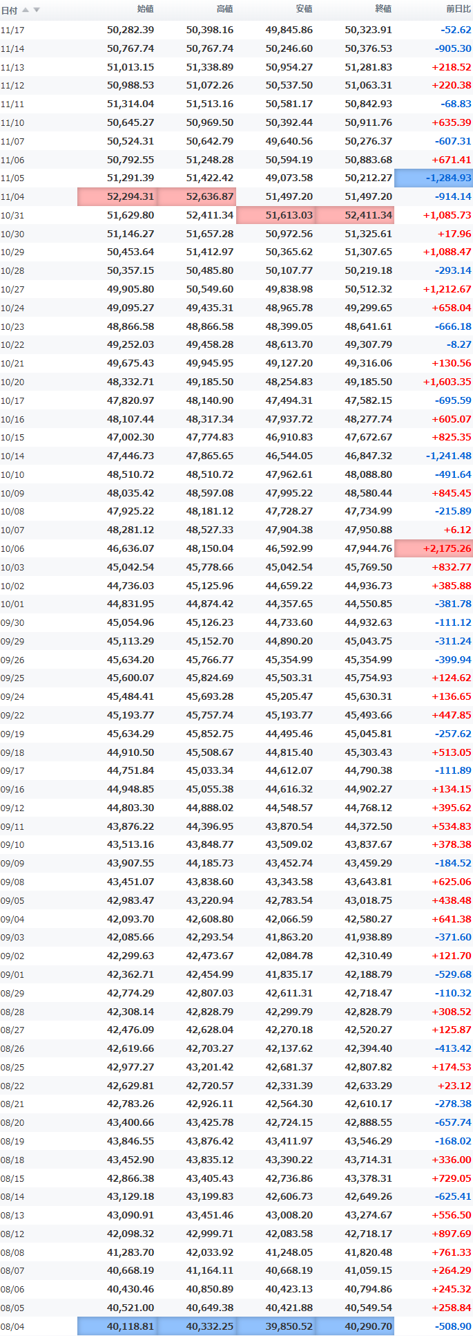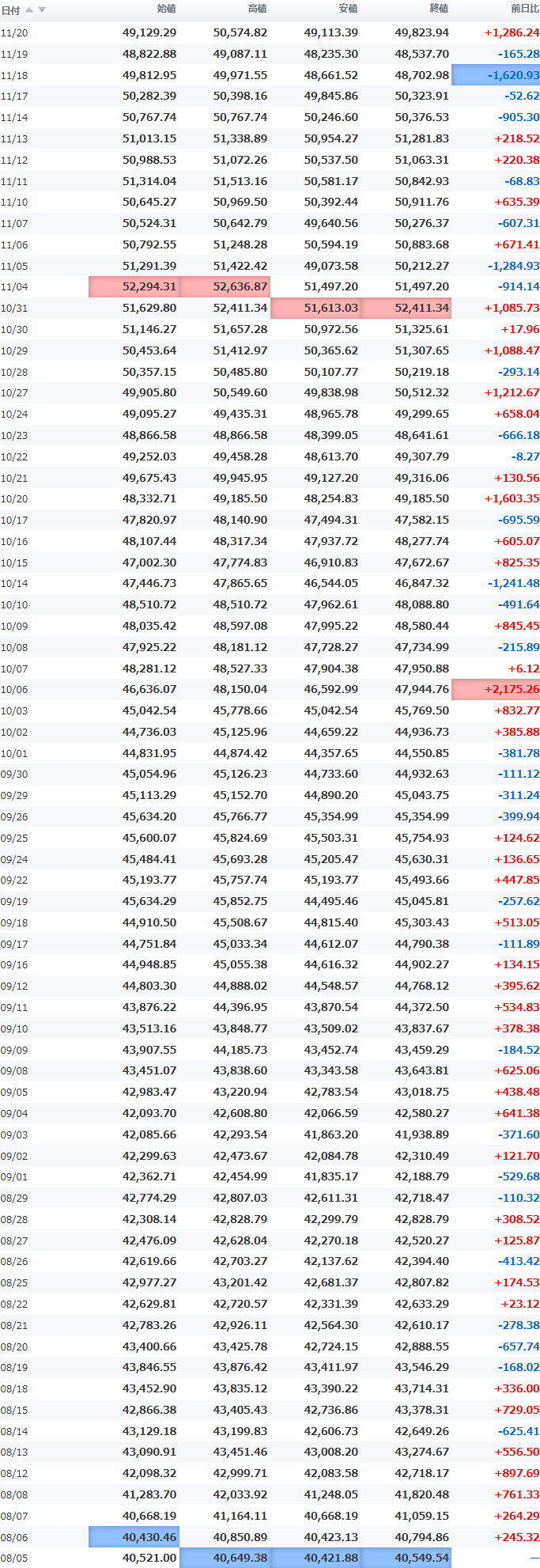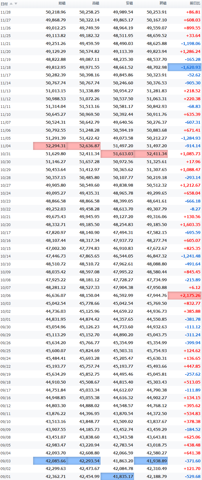 安値 50,224.65