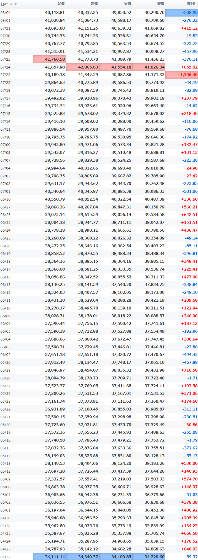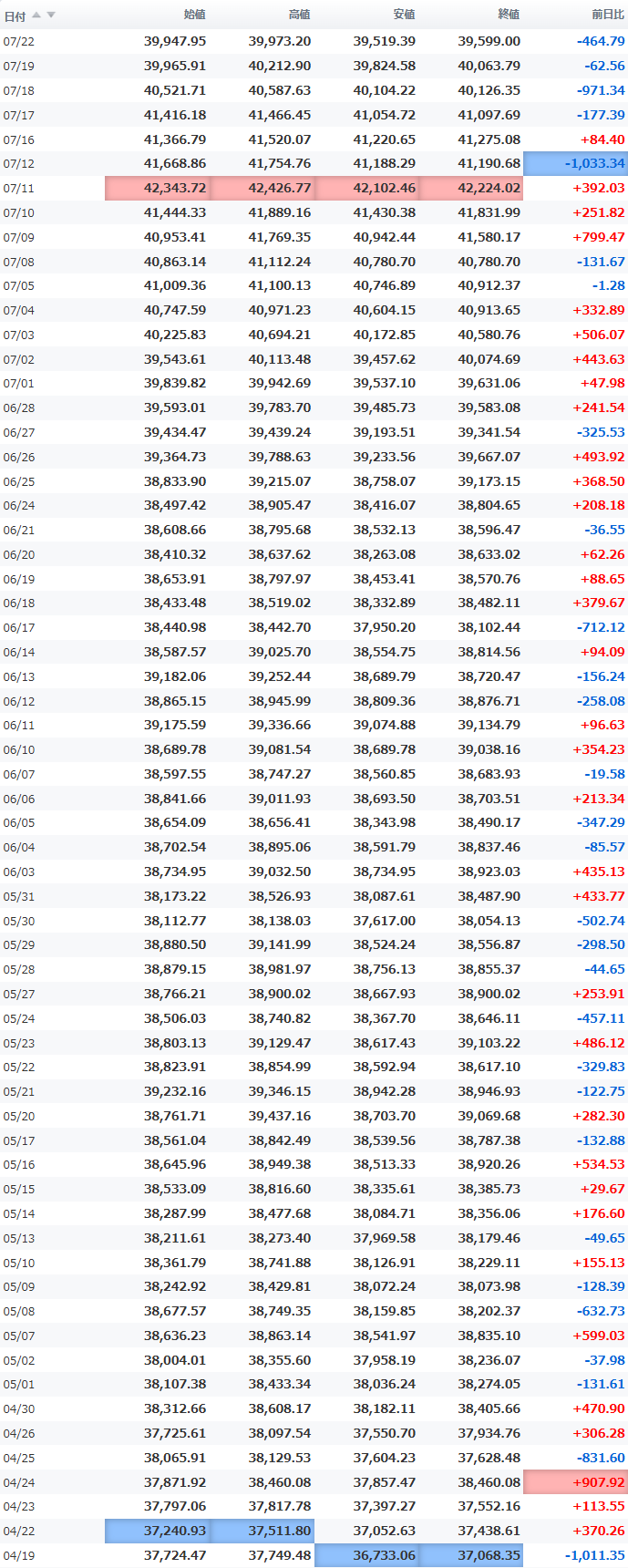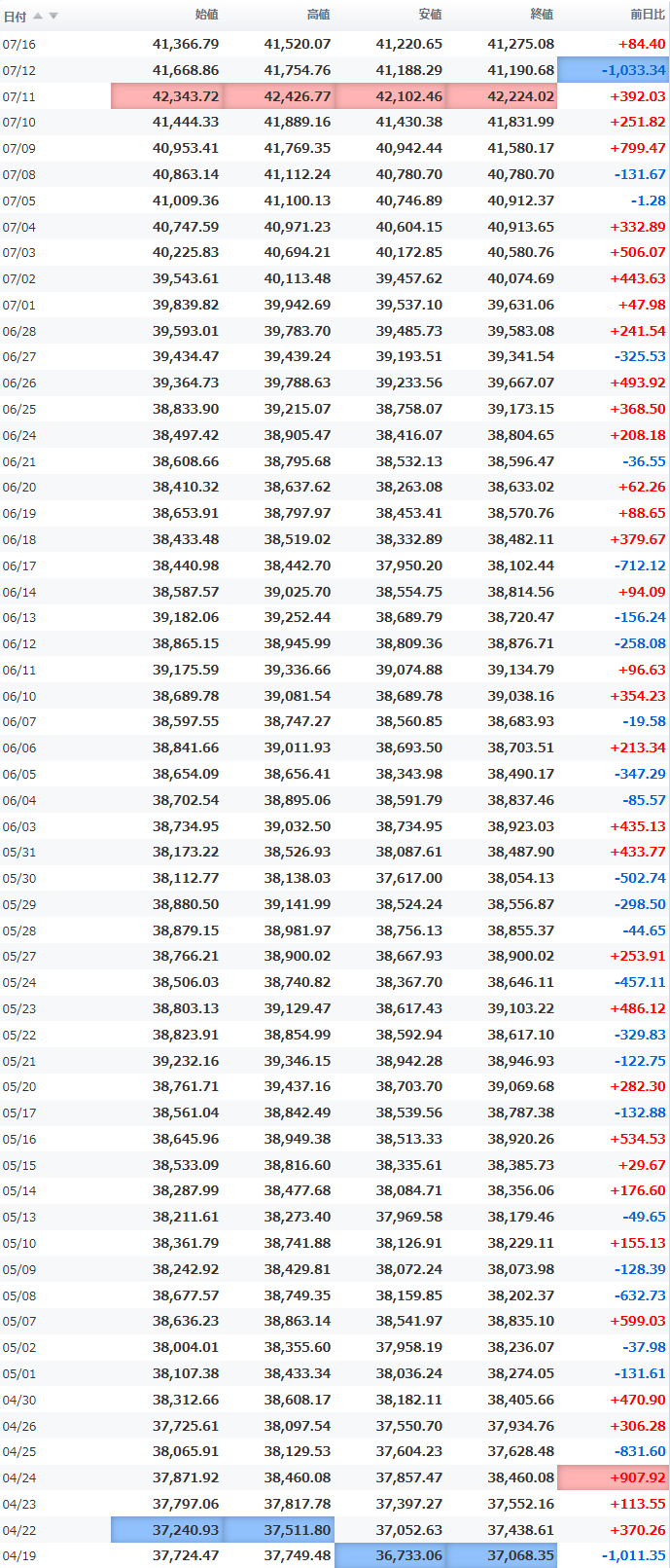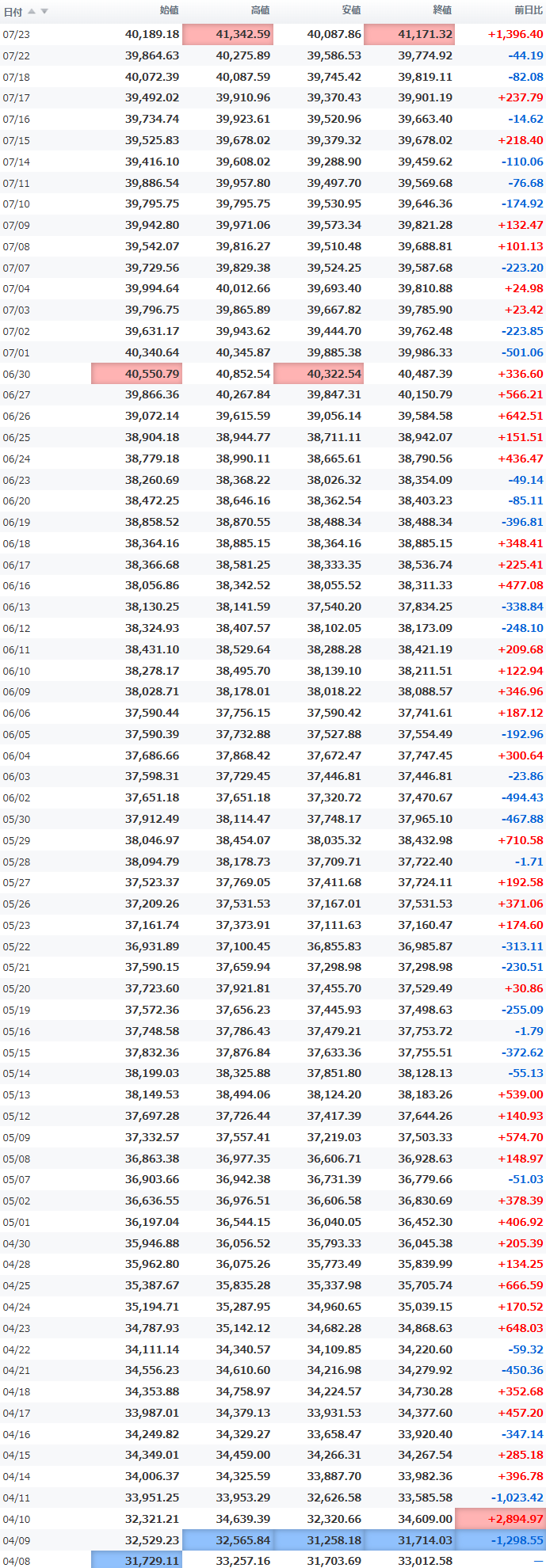 一時高値40,330円をつけながらほぼ高値引けで終えている。