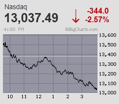 ダウは5日続急落で一時-790ドルの突っ込み安。ナスダックも4月以来の大幅安を記録。
