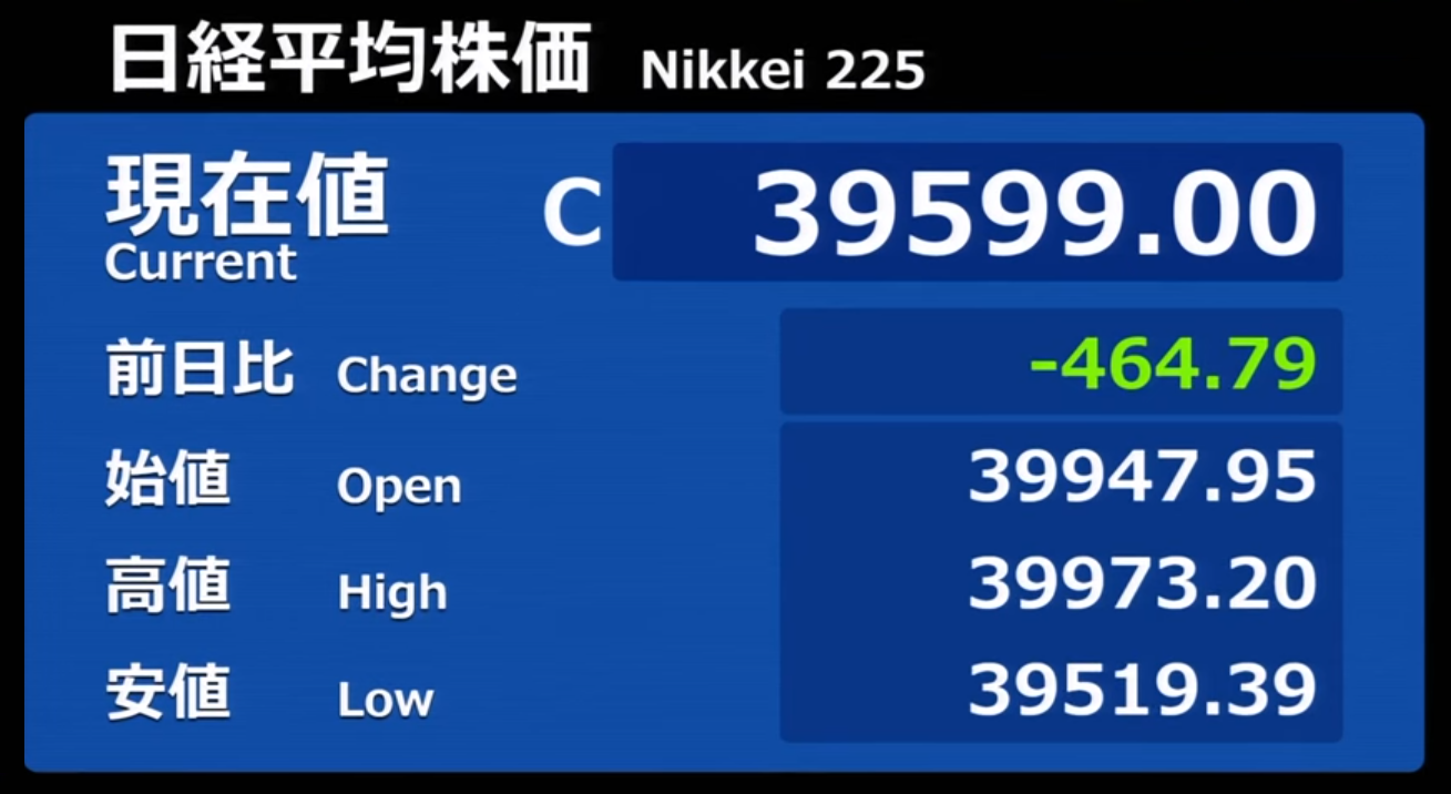 日経平均は続急落。大幅安ながら、4万円割れスタートから大台をすぐさま回復。